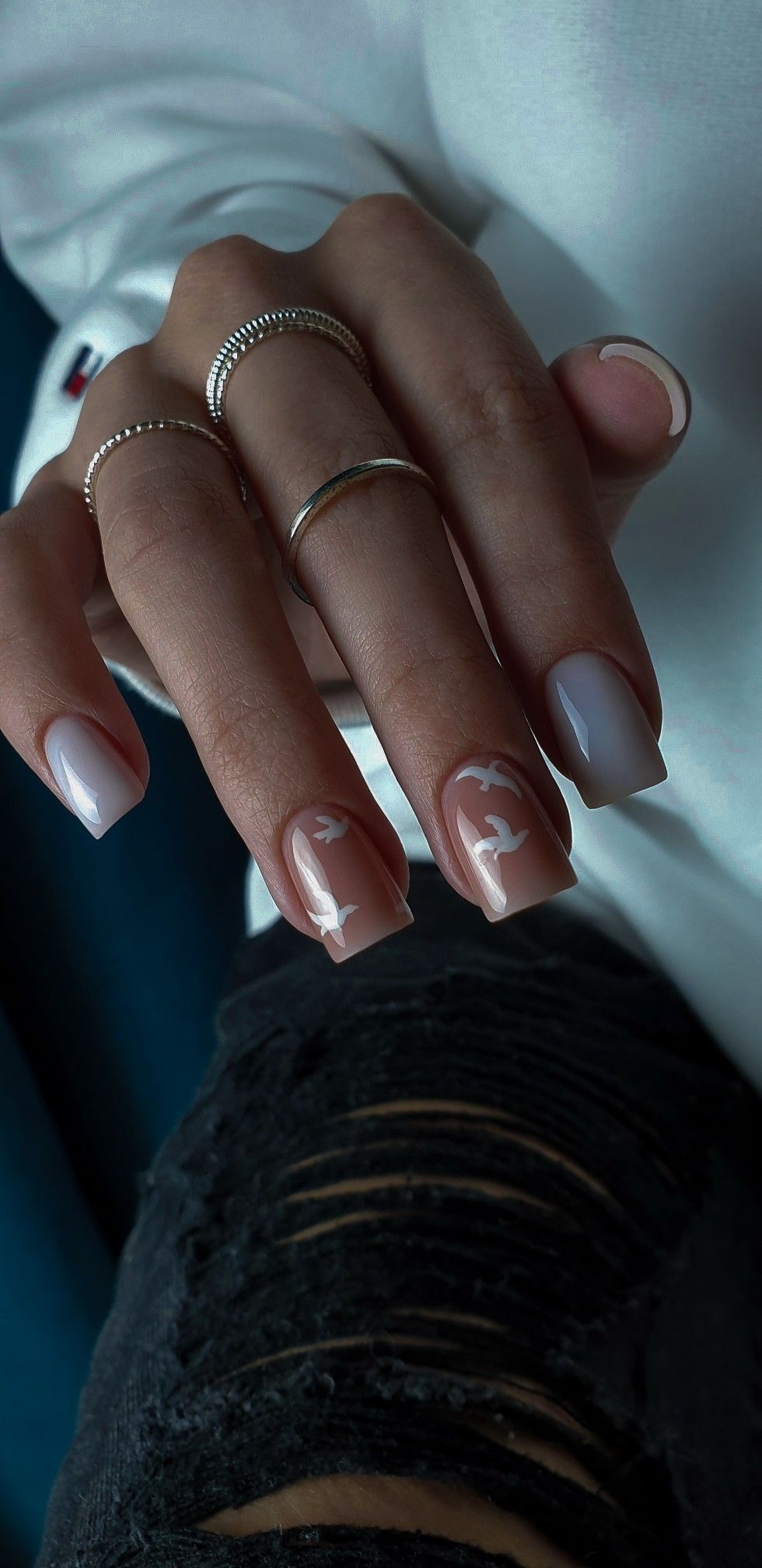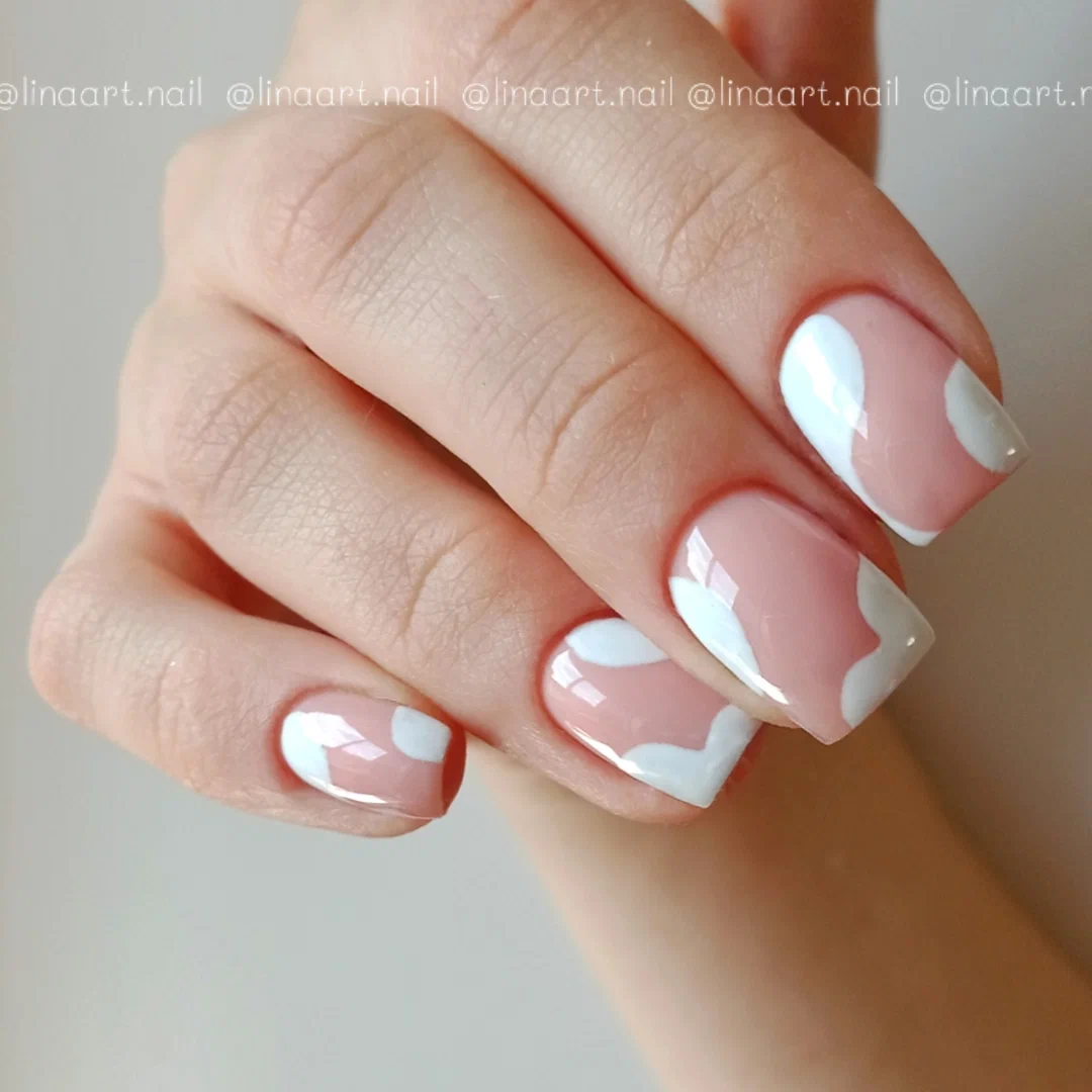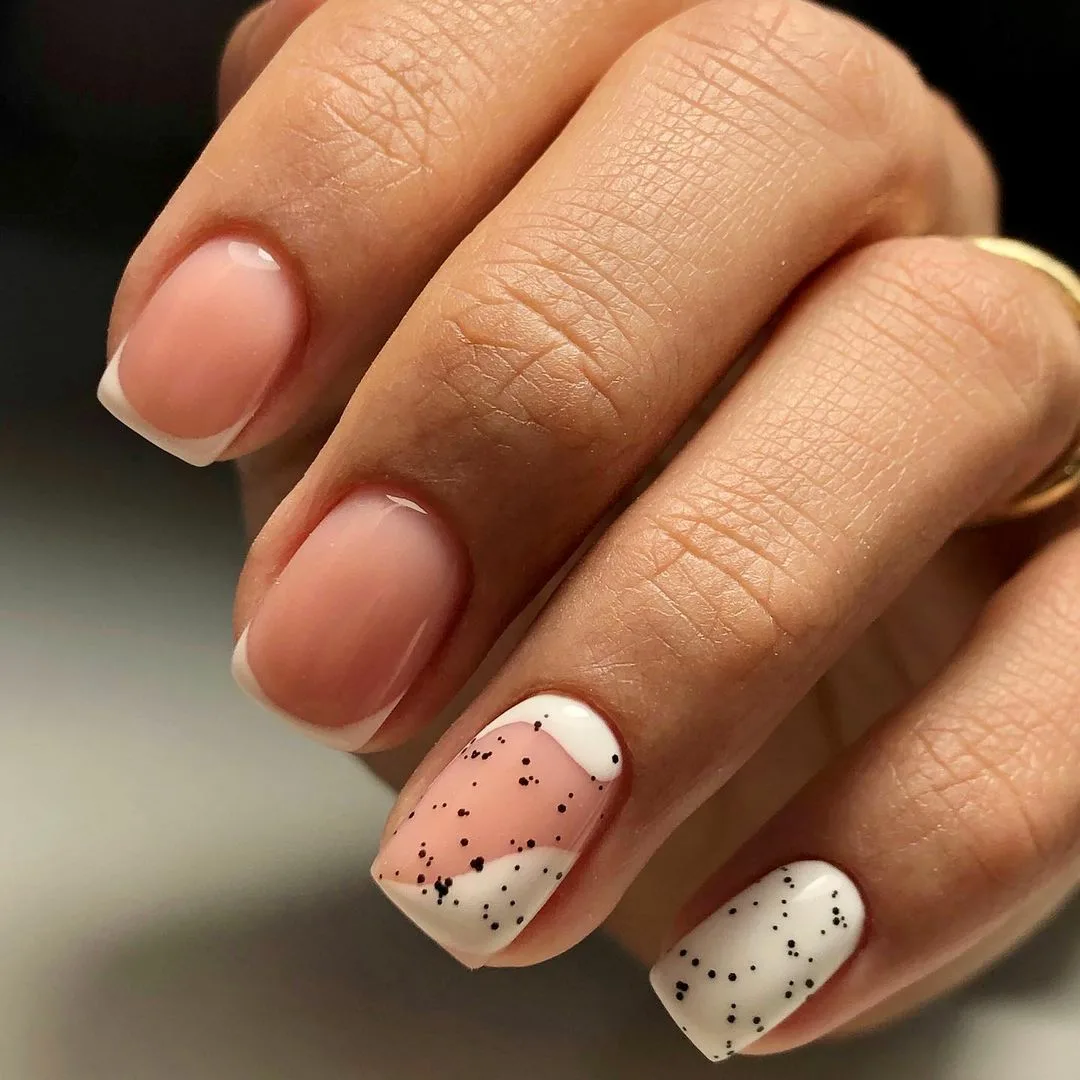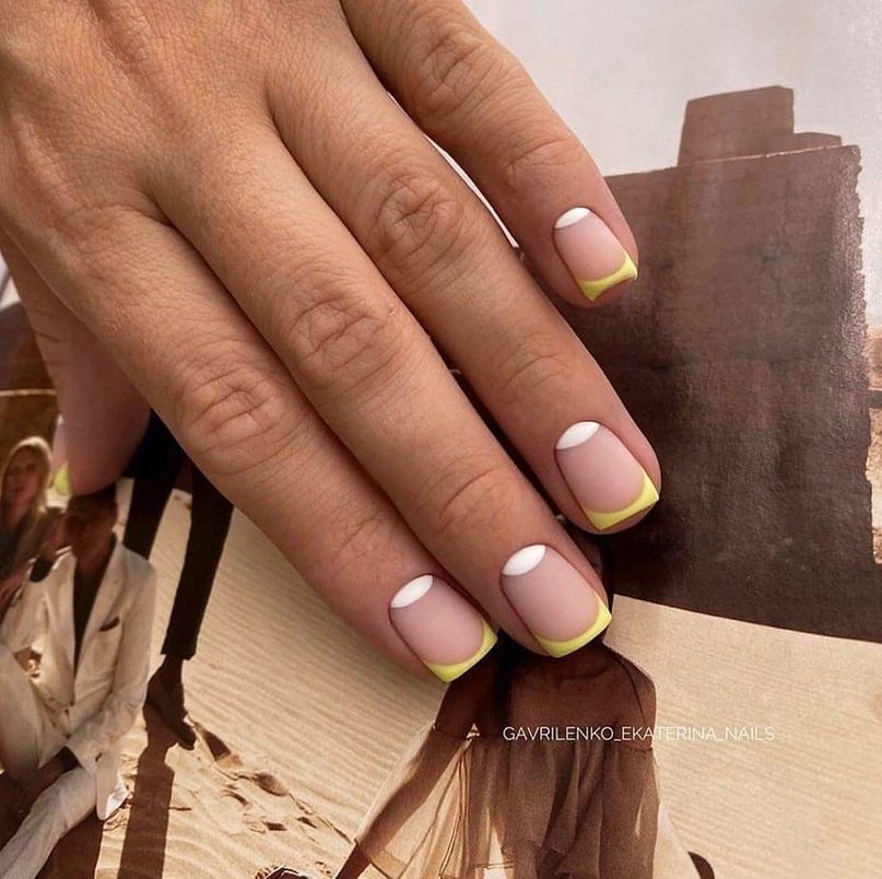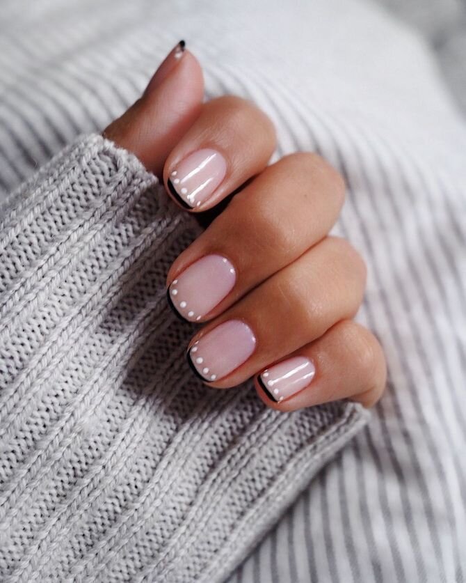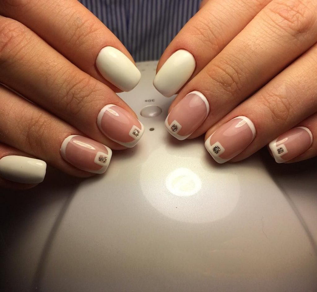 Это классический дизайн, который всегда выглядит стильно и элегантно. Для этого дизайна необходимо нанести белый лак на кончики ногтей, затем залакировать всю ногтевую пластину светлым оттенком.
