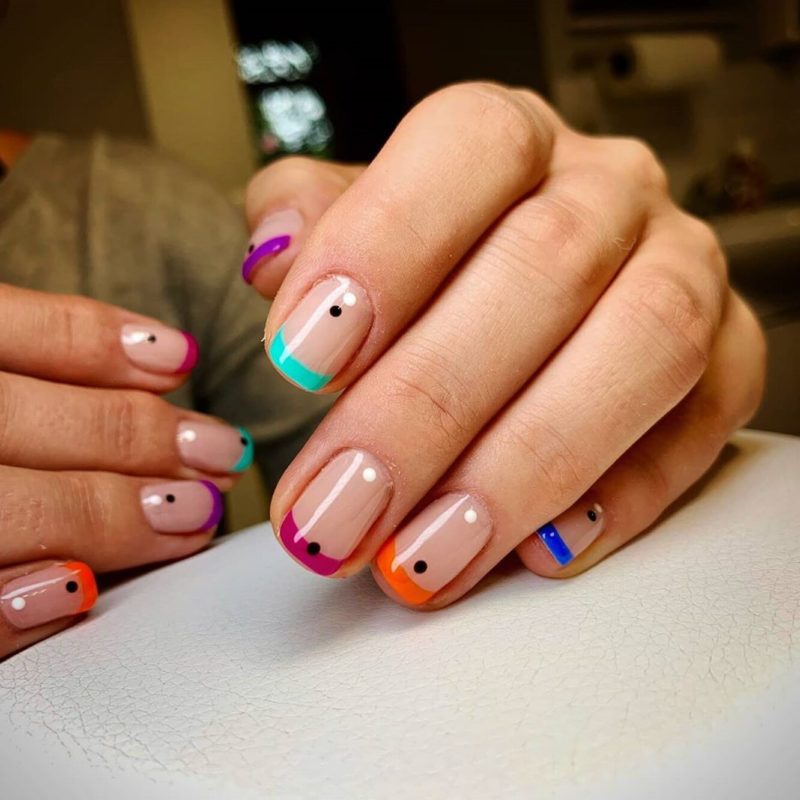- фокусируйтесь на базовых элементах: вместо сложных узоров и рисунков начните с простых базовых элементов дизайна, таких как полосы, точки, ромбы, треугольники и прочее. Нарисуйте их при помощи маникюрной кисточки или зубочистки;