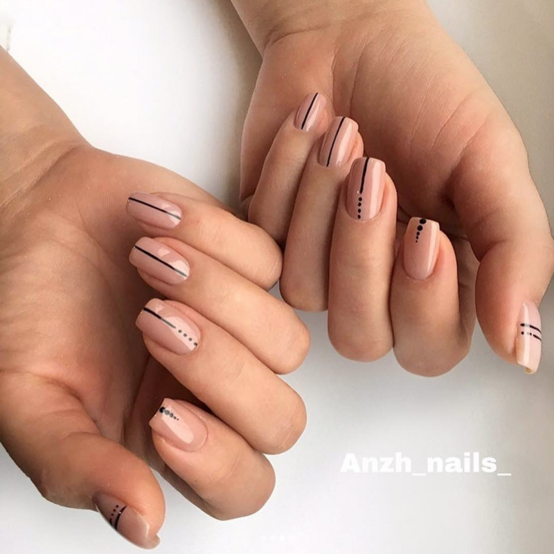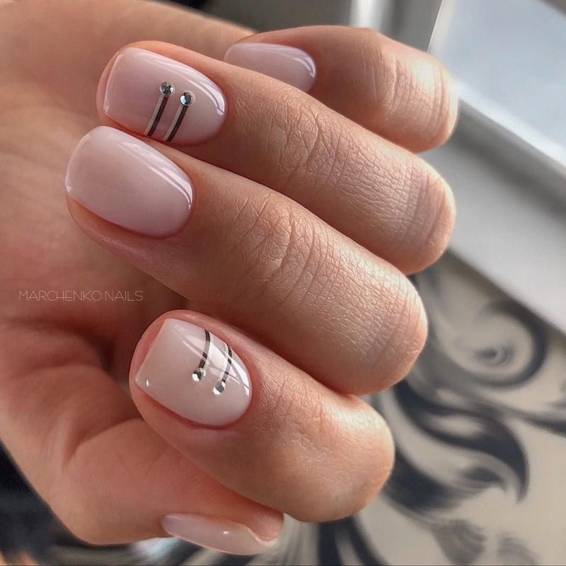 В 2026 сезоне популярен стиль минимализм – когда маникюр на нейтральном фоне дополняется минимальным количеством декора. Например, добавить тонкие полоски посередине ногтевой пластины, небольшой графический рисунок.