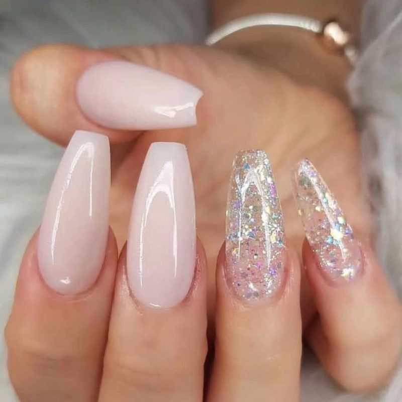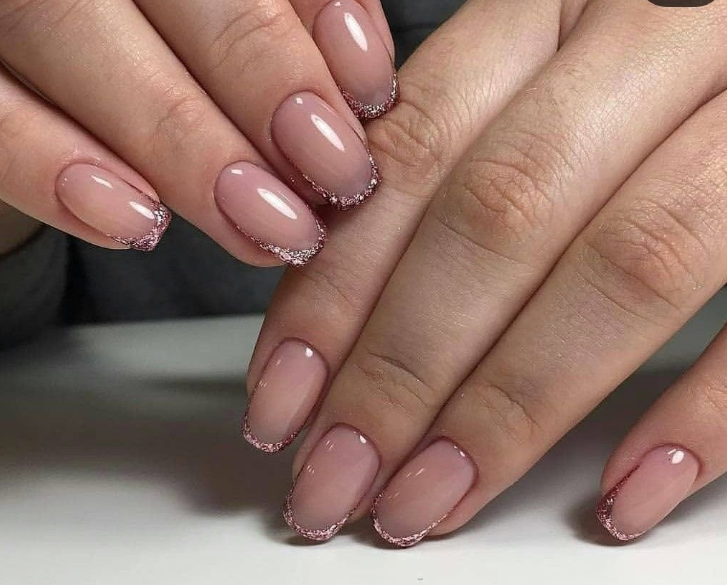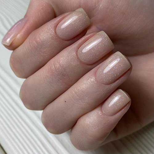- Прозрачный маникюр с блестками