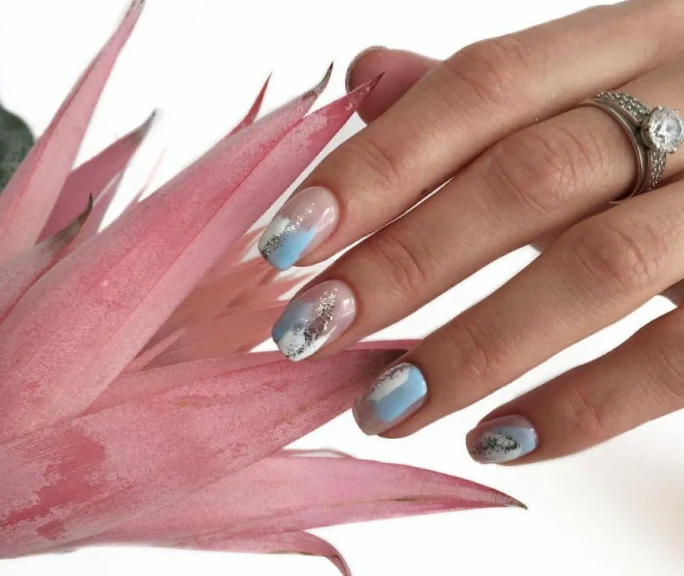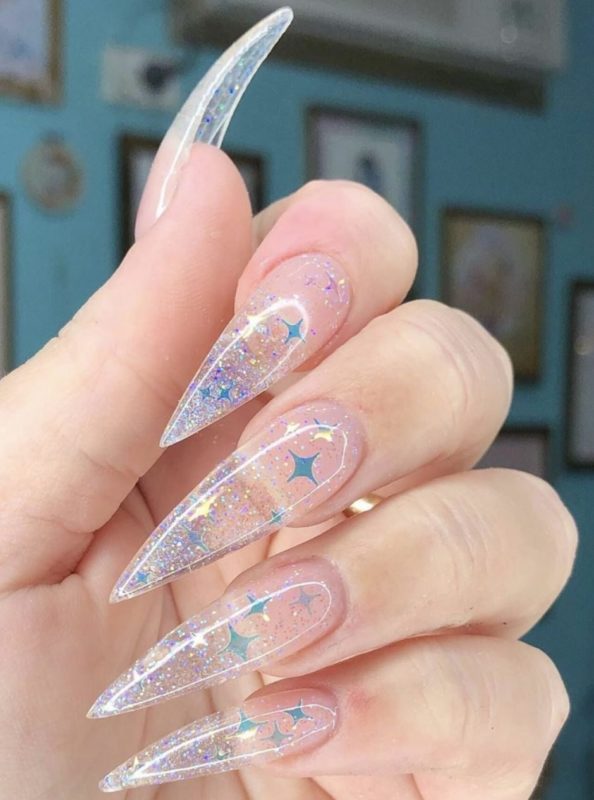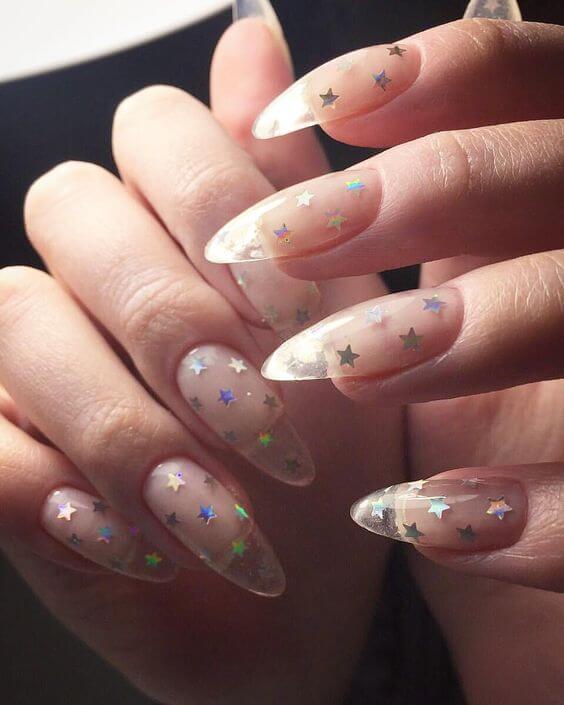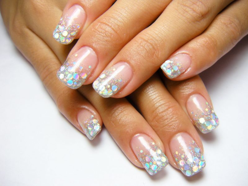 Прозрачный маникюр с блестками