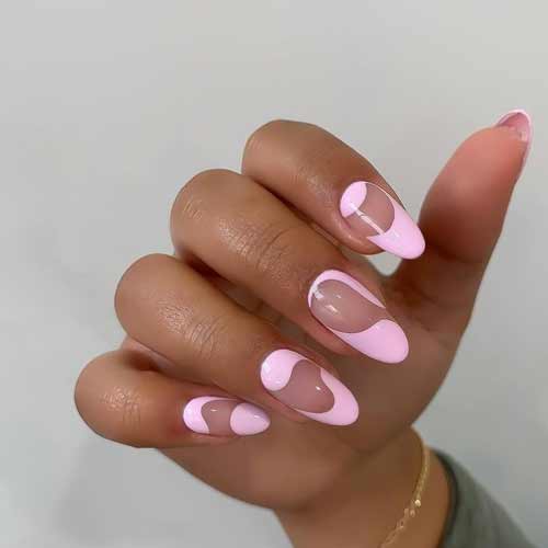Если хочется придать ногтям необычности и стильности, стоит рассмотреть дизайн с прозрачной лункой, когда остальная часть ноготка оформляется в любой другой цвет. Смотрится интересно и нежно.