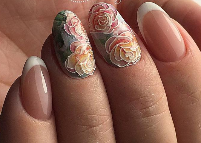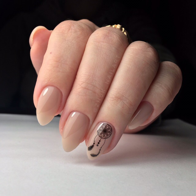Само по себе присутствие рисунков делает ноготки привлекательными. Акцентировать узор или принт поможет полупрозрачная основа, поскольку это неброский и лаконичный фон, который легко сочетается с любым цветовым решением. А выбор изображения и узора, а также цветовая гамма, зависит от личного предпочтения и фантазии.