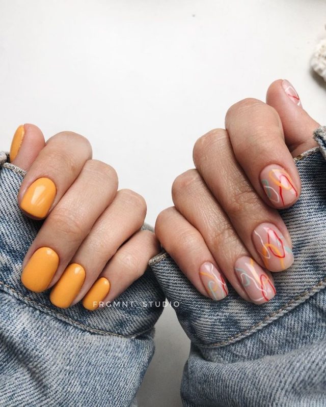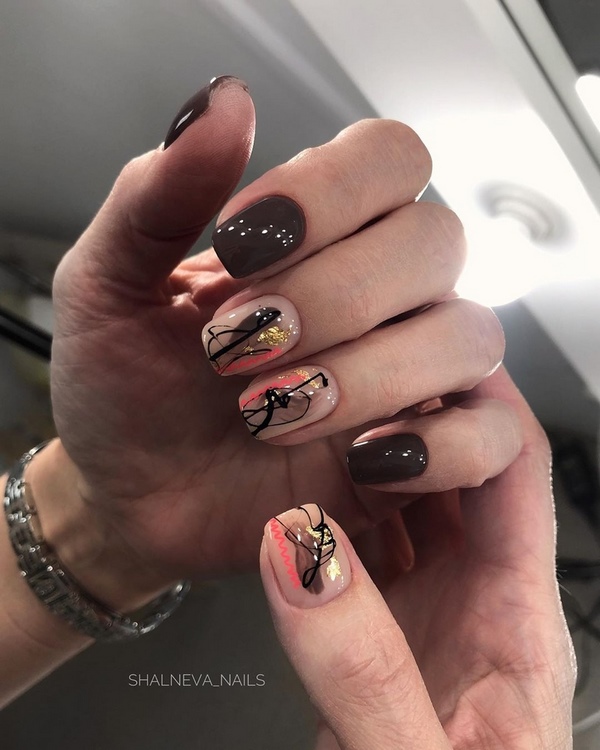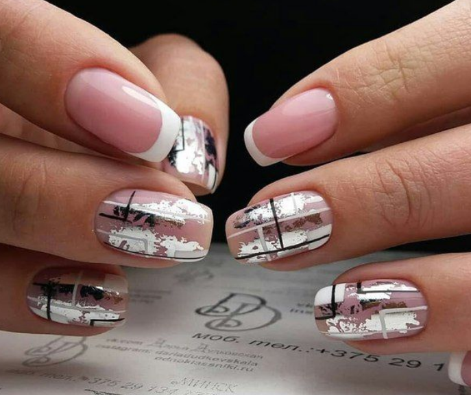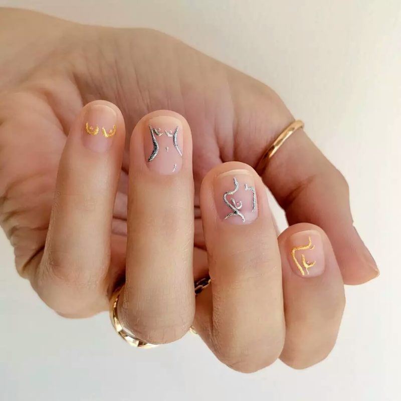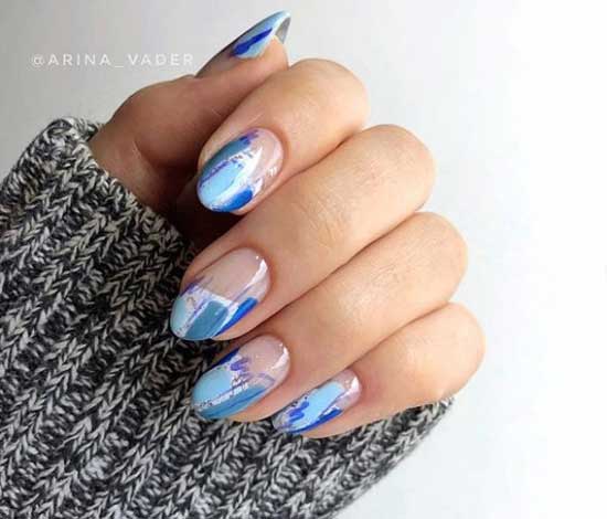 - Прозрачный маникюр с абстракцией