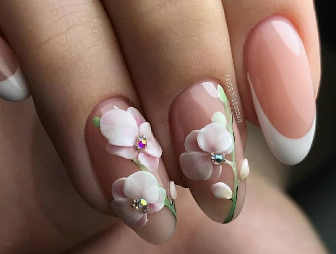 - Прозрачно-объемный маникюр