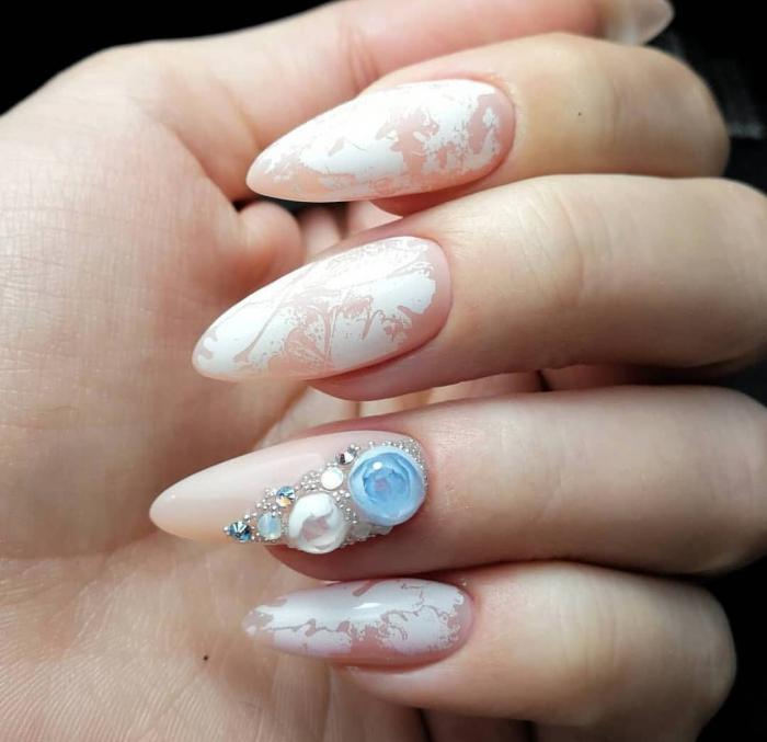Создавая дизайн с использованием декора и украшений, главное знать меру, перебор с украшениями утяжелит нежный маникюр.