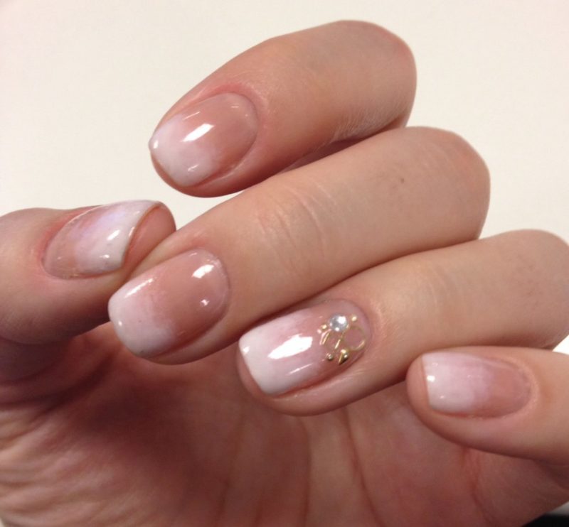 Гелевый материал не обязательно должен быть бесцветным. Разнообразие цветовых вариантов гель лака позволяет выбрать подходящий тон для создания дизайна — подойдут оттенки розового, персикового, белого, бежевого, других нежных тонов.