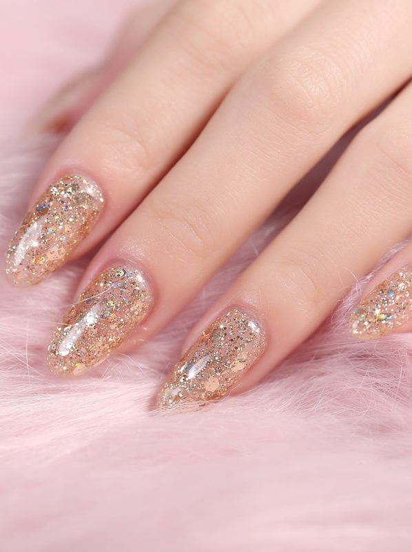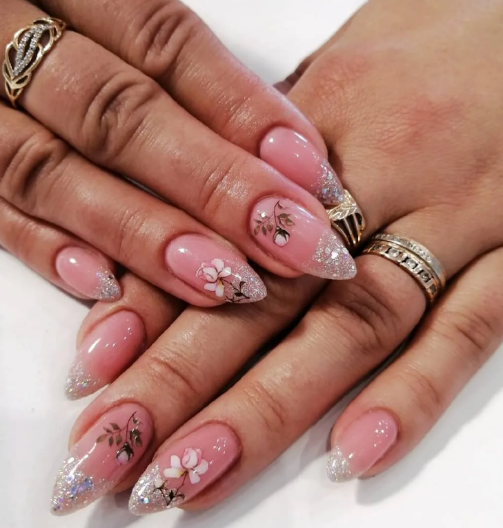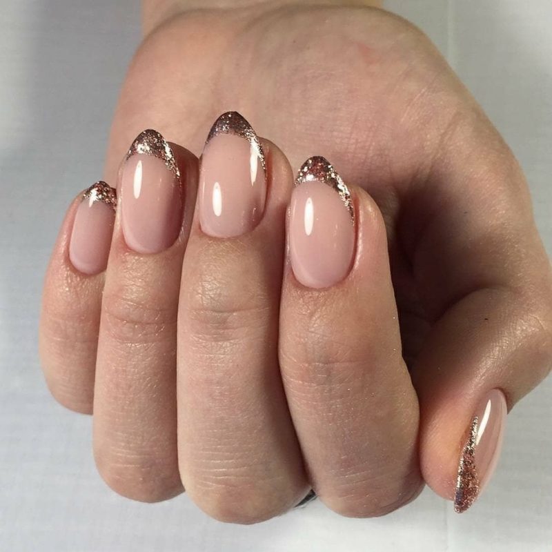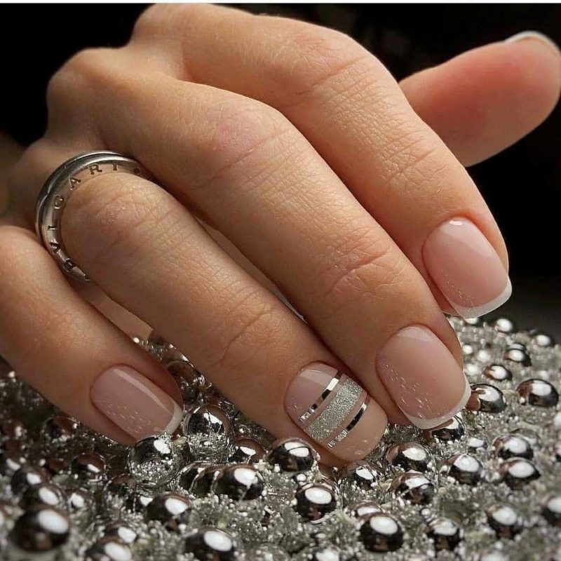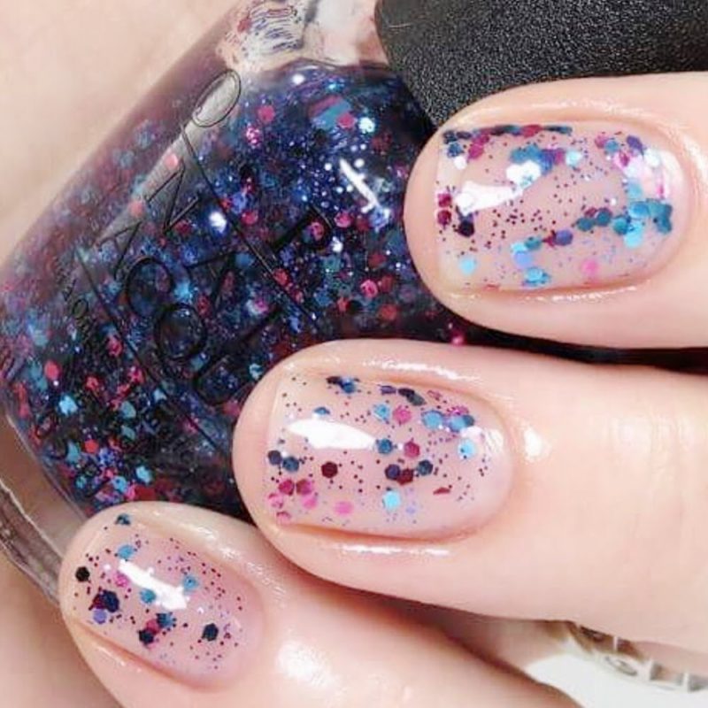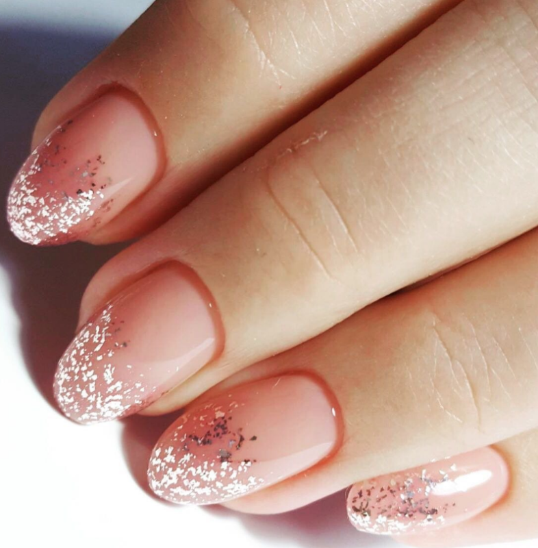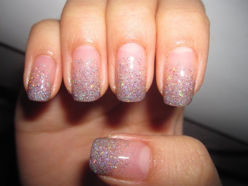 Интересным вариантом маникюра в домашних условиях является оформление покрытия блестками: