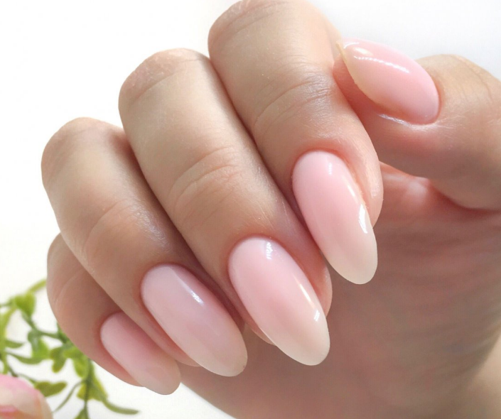 Для миндалевидной формы характерно небольшое заострение к кончику ноготка. Такая форма считается универсальной, позволяет воплотить любые идеи дизайна, в том числе бесцветного фона.