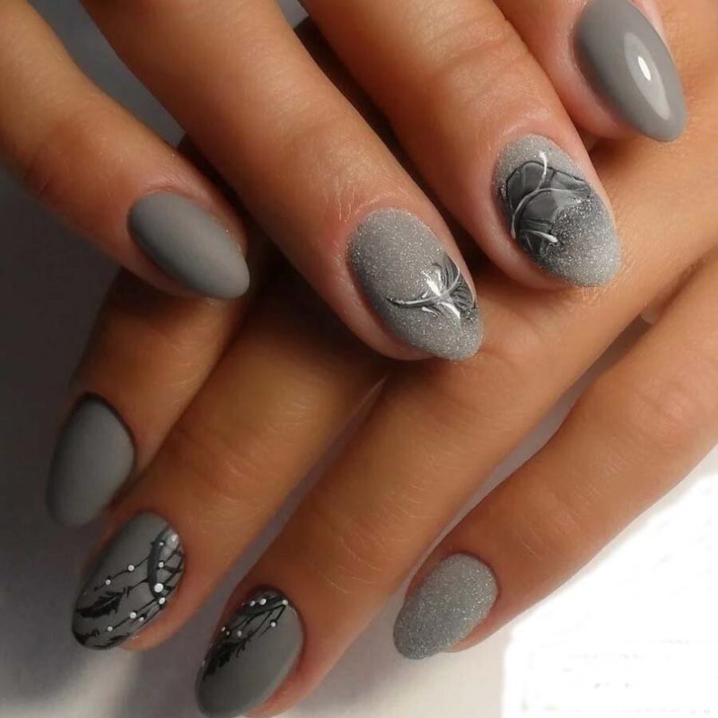 Серый оттенок кажется многим скучным и неинтересным. Возможно, если говорить о нем, как о простом ахромате — сочетании белого и черного цветов. Но палитра серого, которую используют мастера маникюра, разнообразна и многогранна. А если дополнить серый нейл-арт интересным дизайном, все взгляды будут прикованы именно к вашим ручкам.