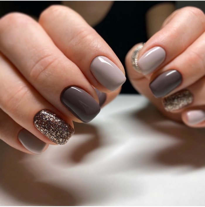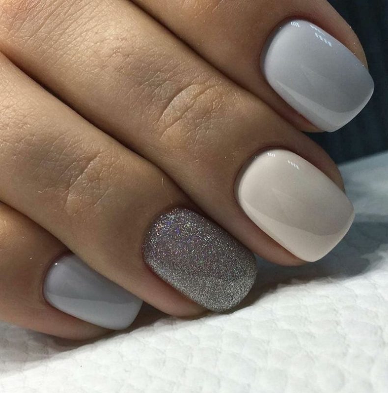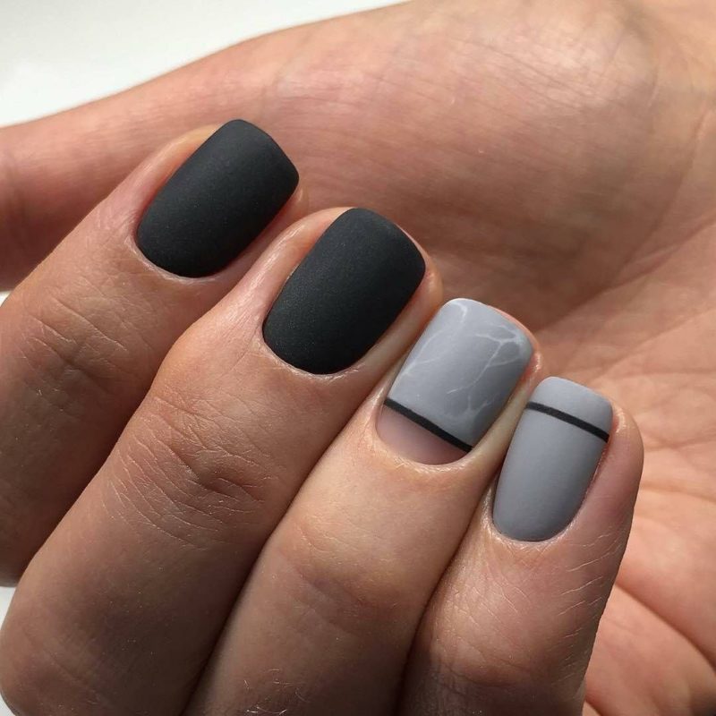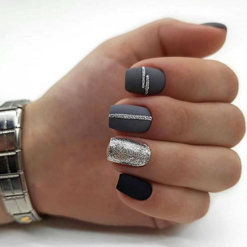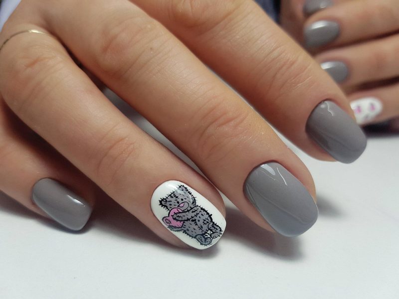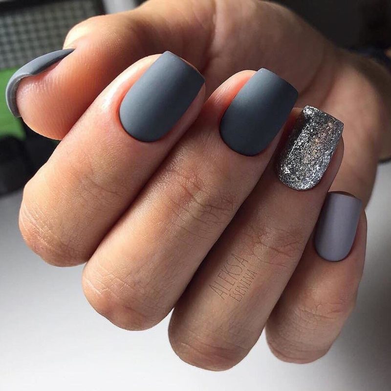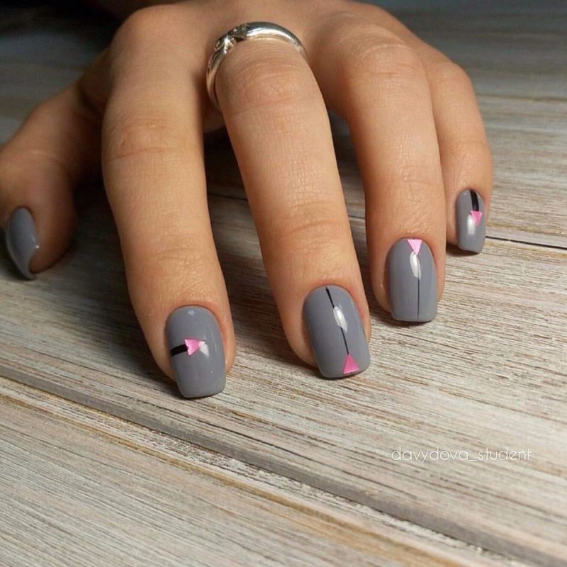 Обладателям коротких подходит дизайн серый классический вариант. Не нужно сомневаться и переживать по поводу того, что коротким ногтям не подойдет этот цвет. Наоборот, он будет подчеркивать минимальную длину, придавая образу женственности.