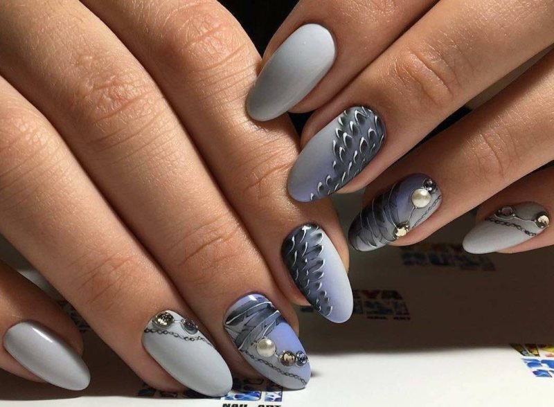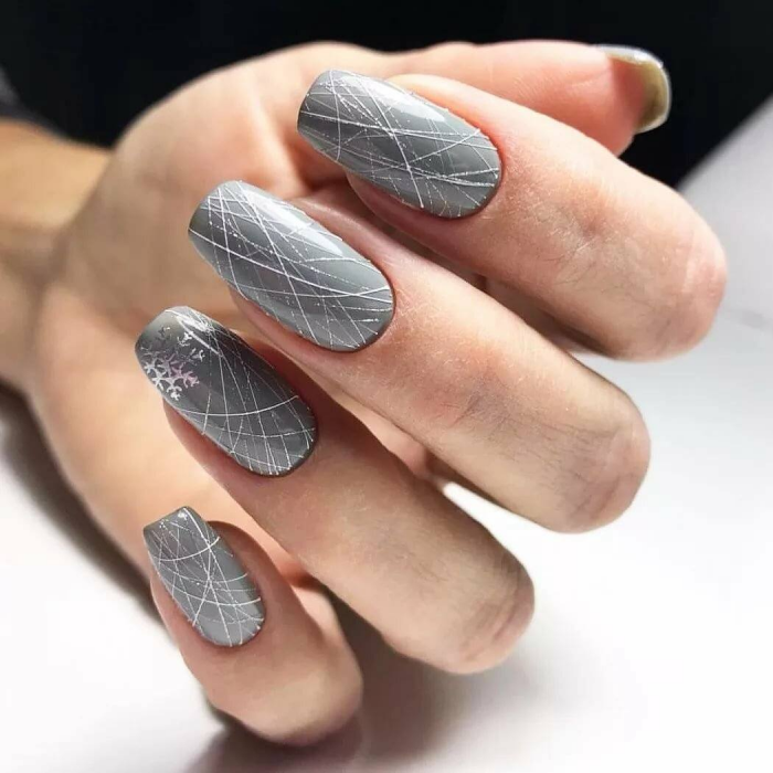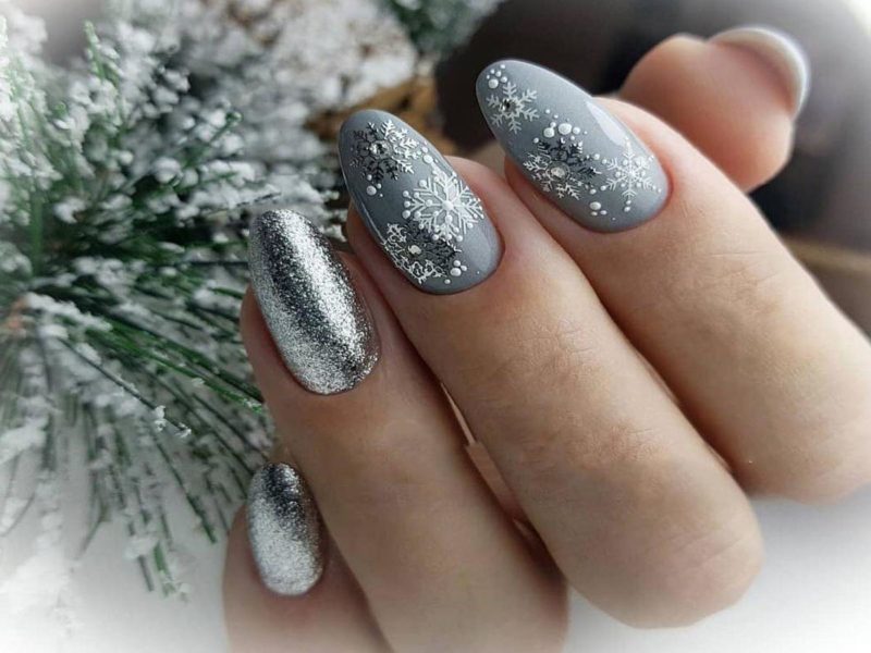 Важно: маникюр в серых тонах с серебристым дизайном плохо сочетается с золотыми украшениями.