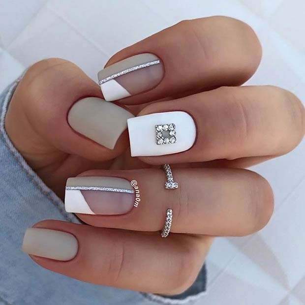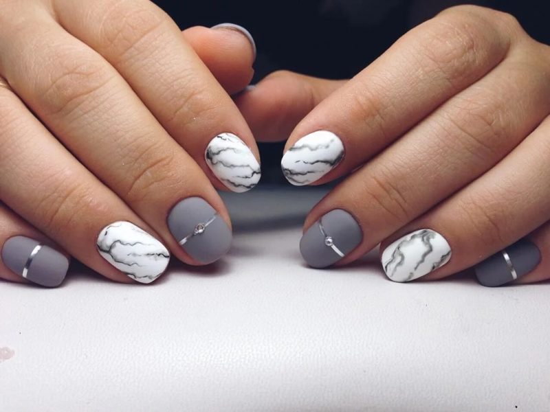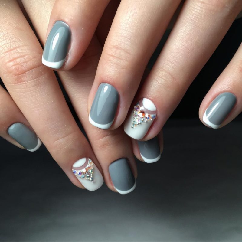 - Маникюр серый с белым