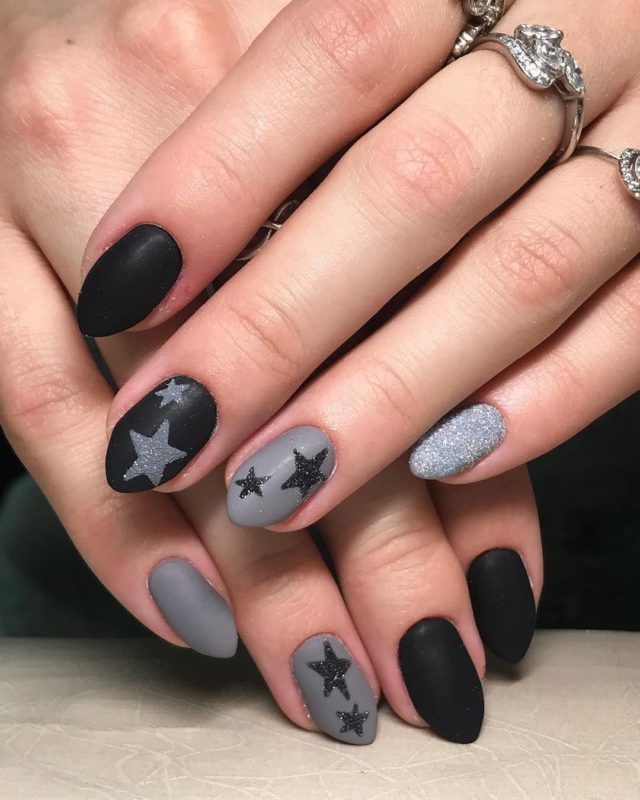 Черный с серым маникюр