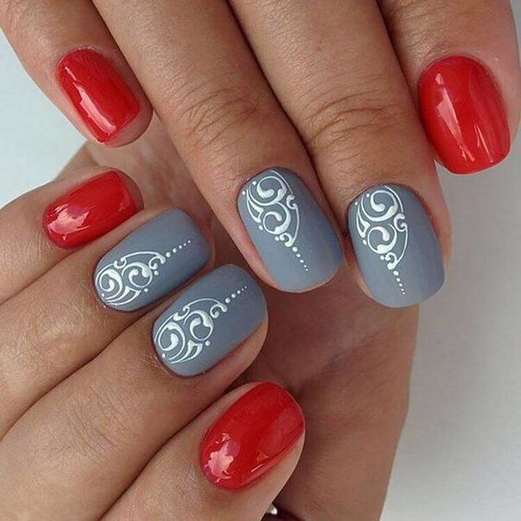 Данная комбинация подходит тем, кто выбирает лаконичность и сдержанность. По желанию, можно воплощать в жизнь любые дизайны, рисовать сложные геометрии, рисунки и так далее. Стоит добавить, что независимо от времени года, красный всегда в моде, это беспроигрышный тренд, который сочетается с многими предметами гардероба.