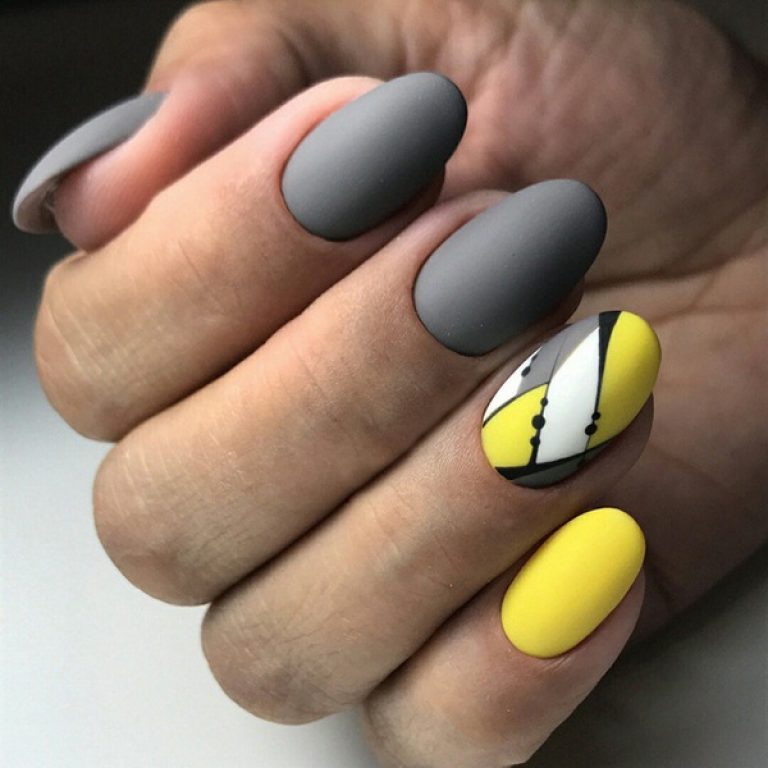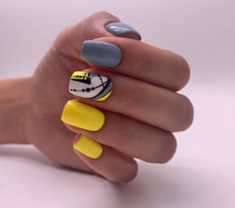 Серо-желтый маникюр