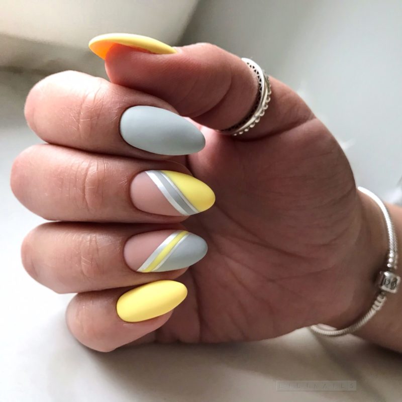 Ошибочное мнение, что желтый цвет в дизайне – старомодный, подходит только юным красавицам, дамам в зрелом возрасте его стоит обходить стороной. На самом деле, главное – найти ему правильное применение. Если грамотно сочетать его с серым гель-лаком, они будут гармонировать.