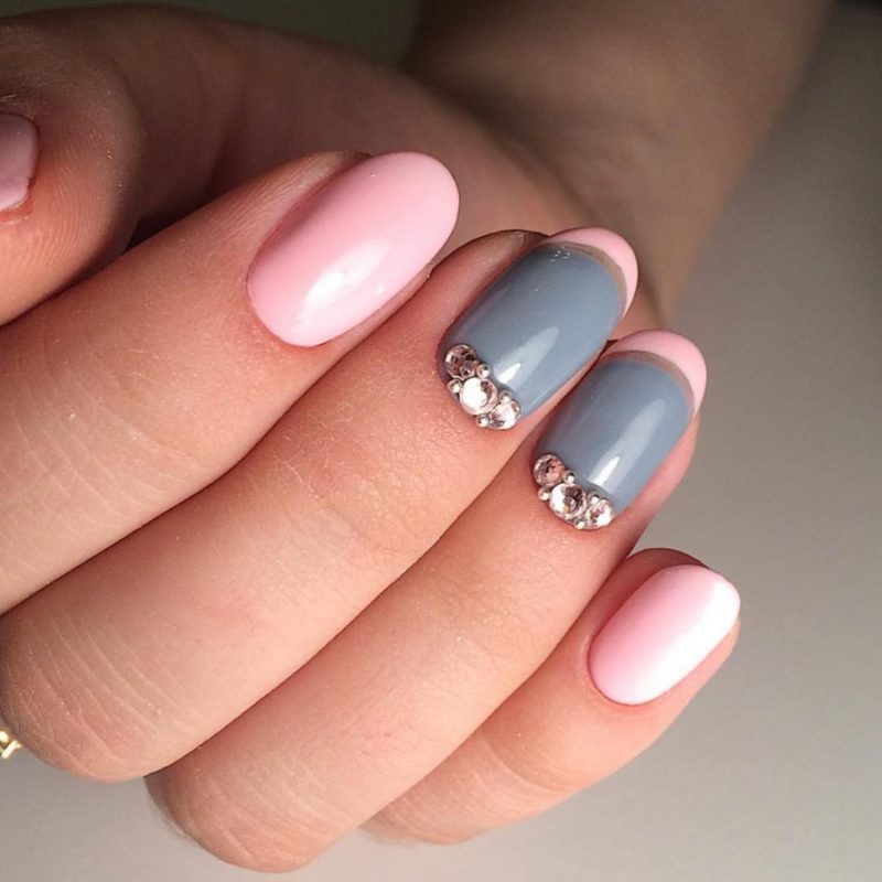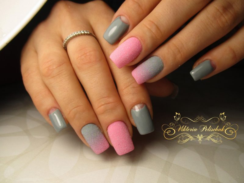 - Маникюр серо-розовый