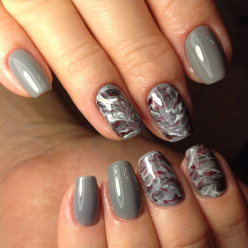 - Серый маникюр с разводами