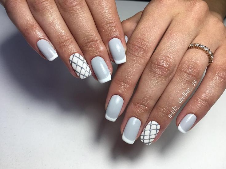 Маникюр серый с белым