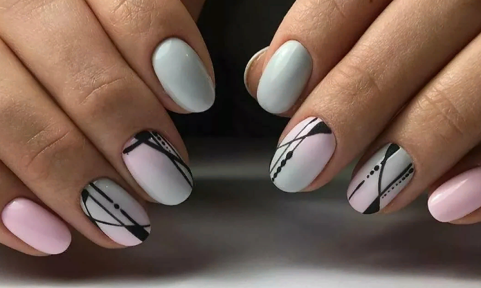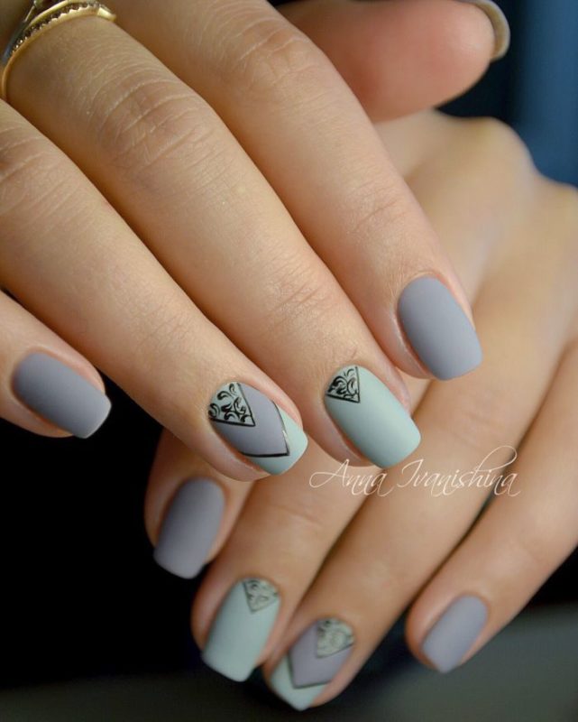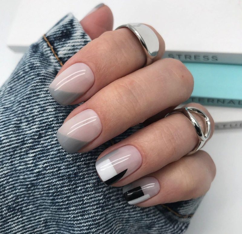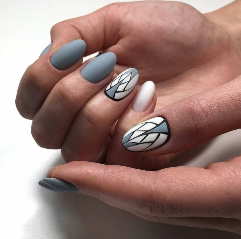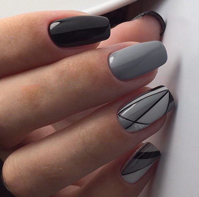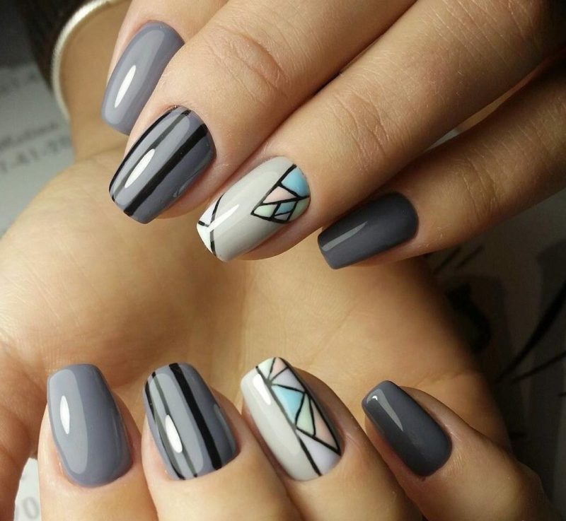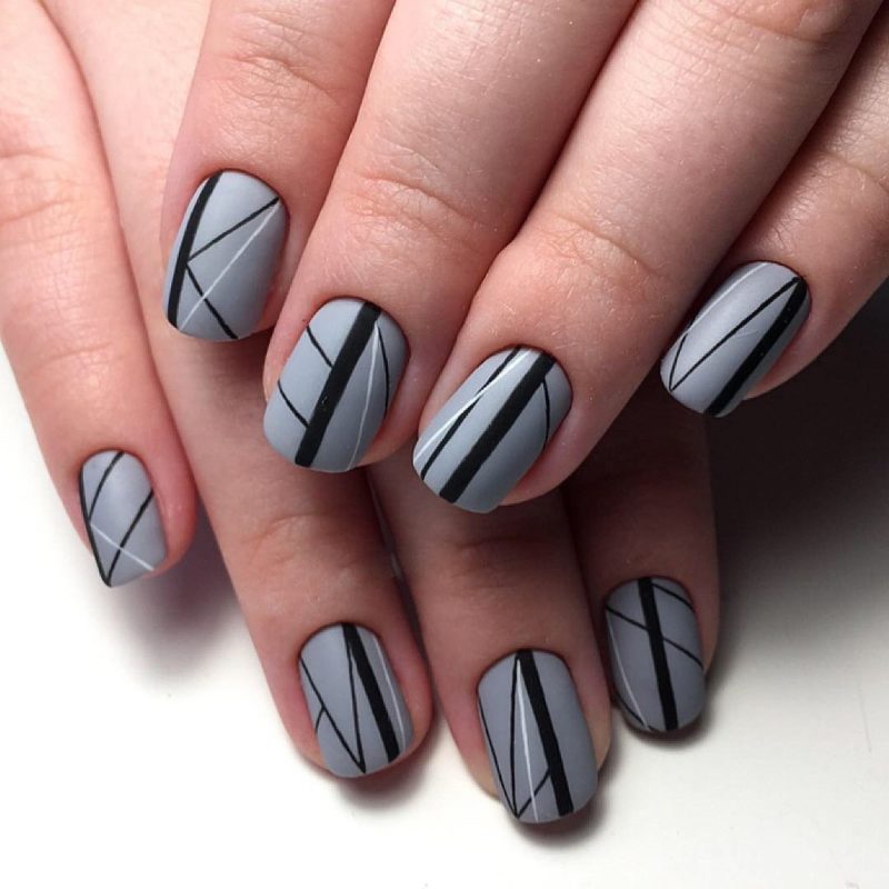 - Серые ногти с рисунком — геометрия