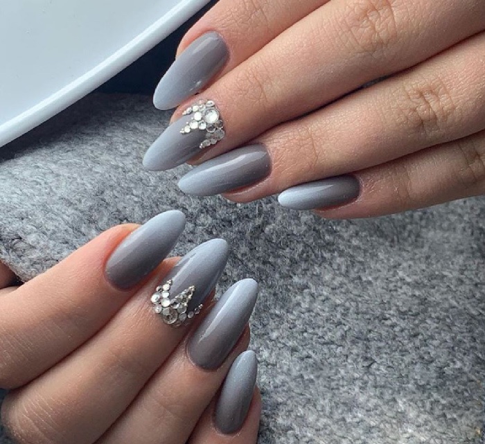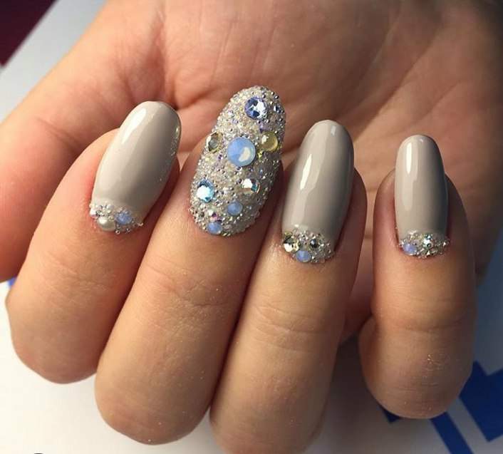 - Ногти серые с блестками, стразами