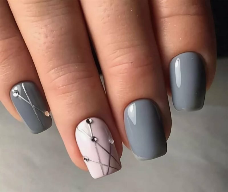 - Варианты серого маникюра для разной длины