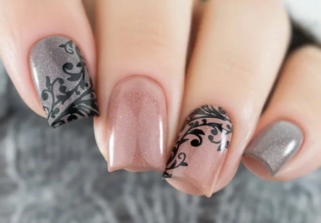 Маникюр серо-розовый