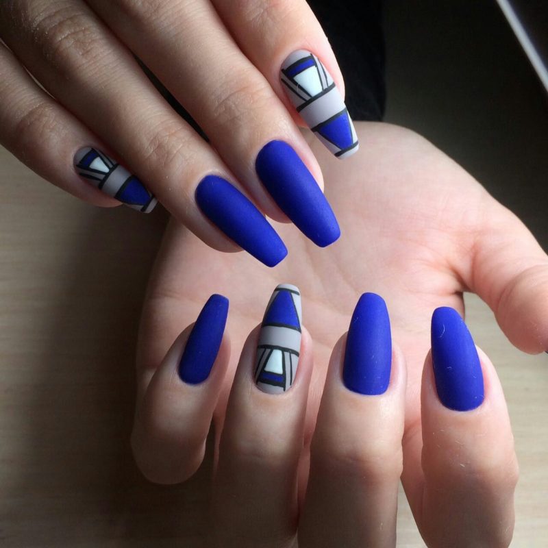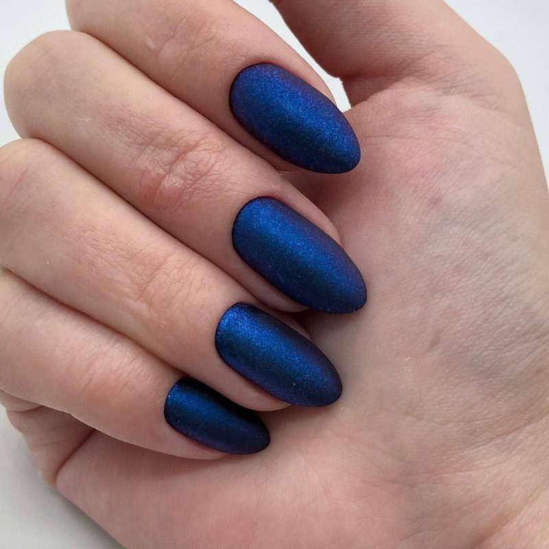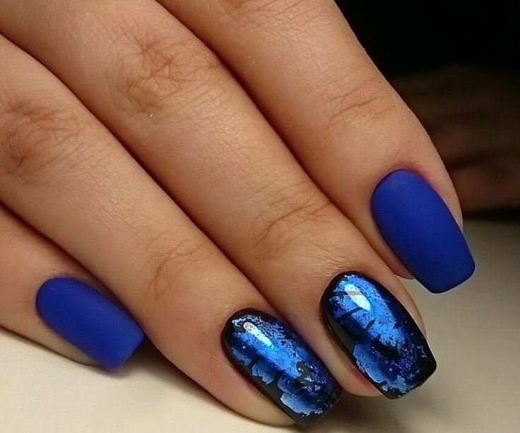 Синий матовый маникюр по длине ногтей и форме ногтей