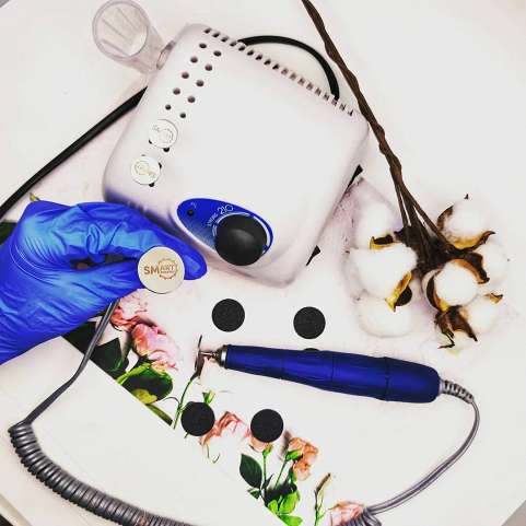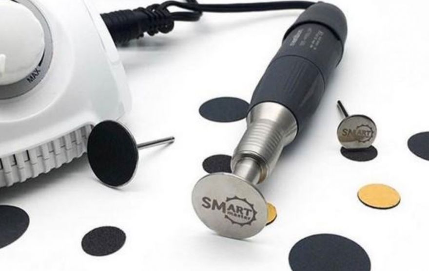 Выполнять смарт-педикюр можно любым фрезером. Важно, чтобы в нём присутствовал цанговый отжим, и прибор мог выполнять действия на больших оборотах. На каких оборотах работать смарт-диском? Обороты должны составлять около 25 тысяч в минуту. Чем меньше диаметр диска, тем больше оборотов должно быть. Основная характеристика фрезера — мощность (от 60 Вт).