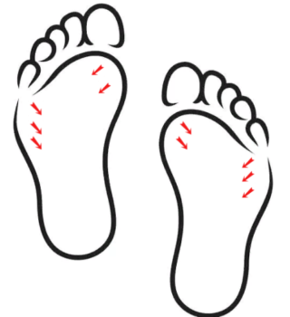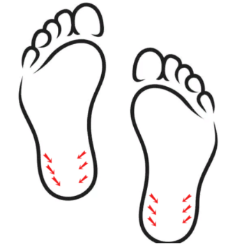 - Далее ёлочкой постепенно передвигаемся по ступне к пятке.