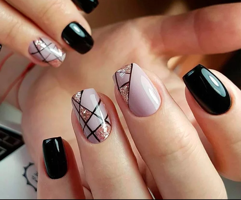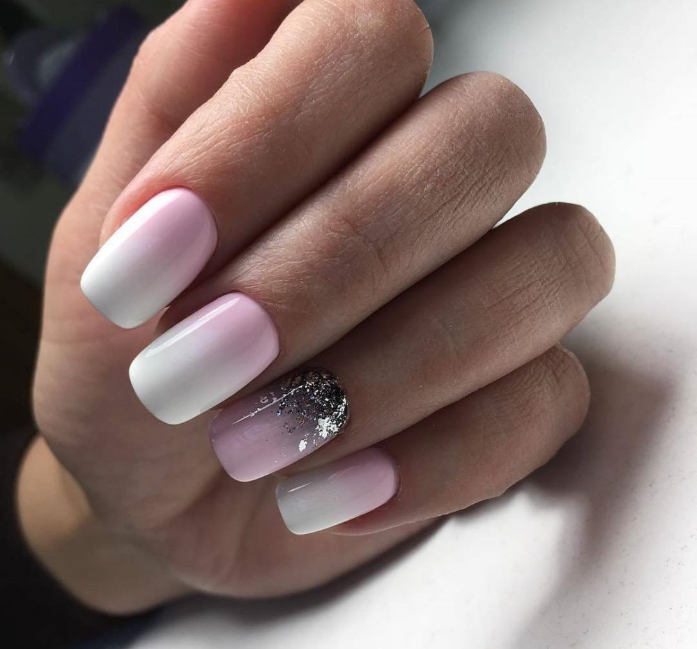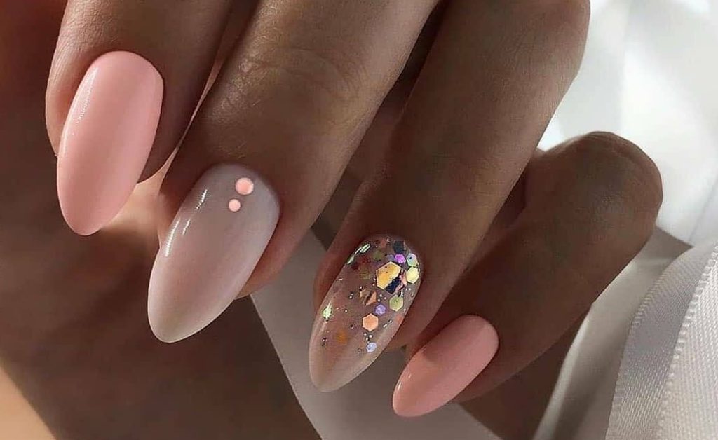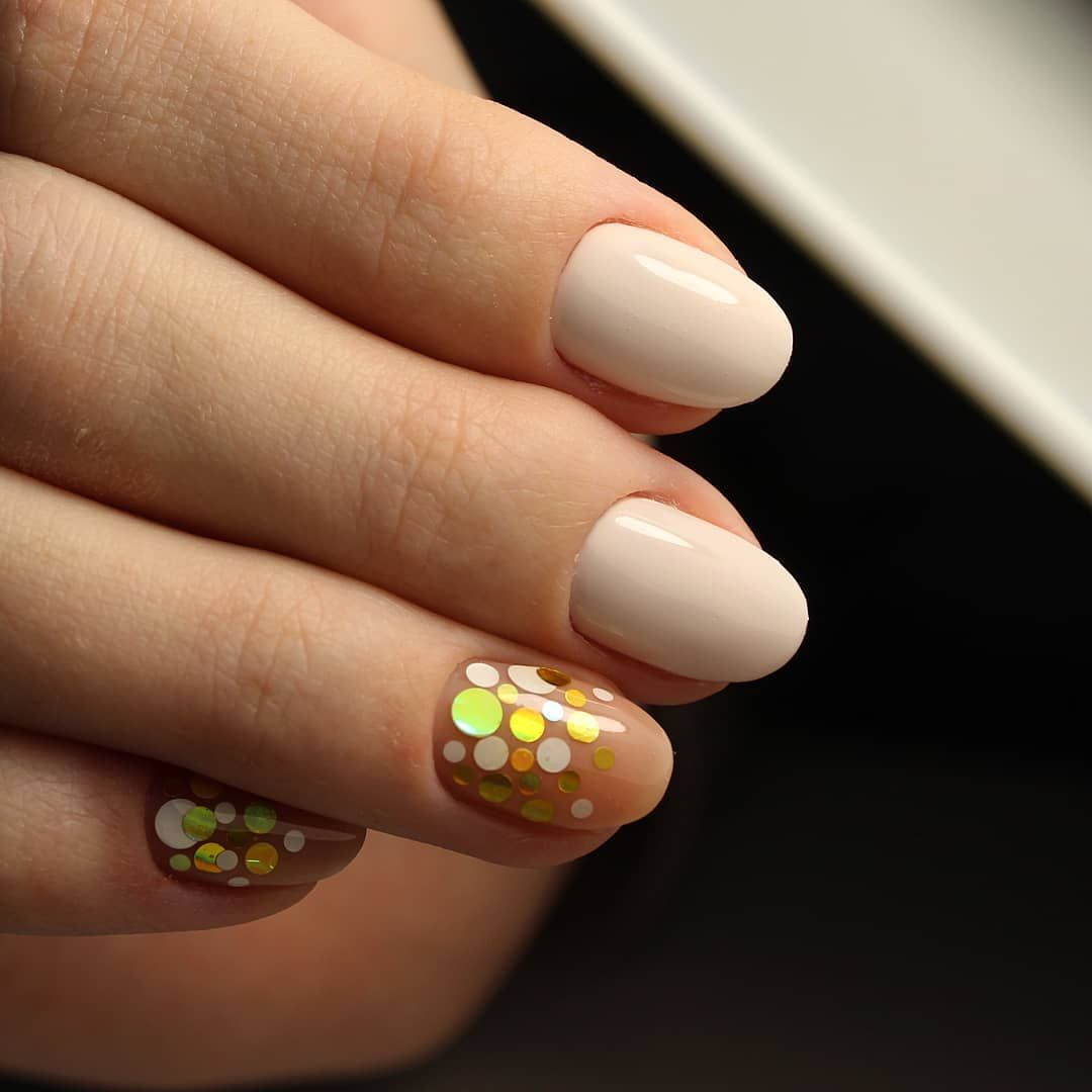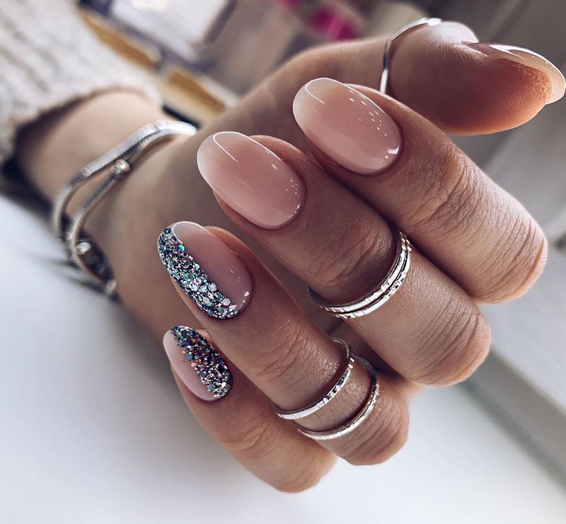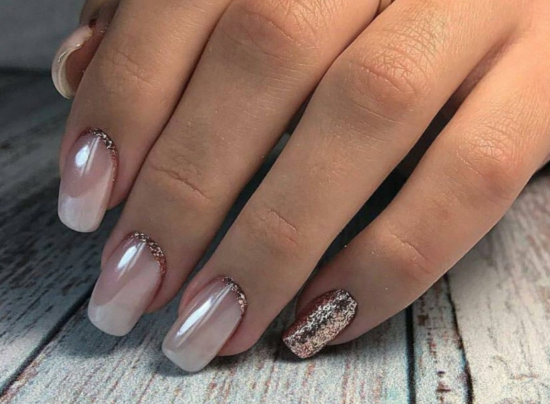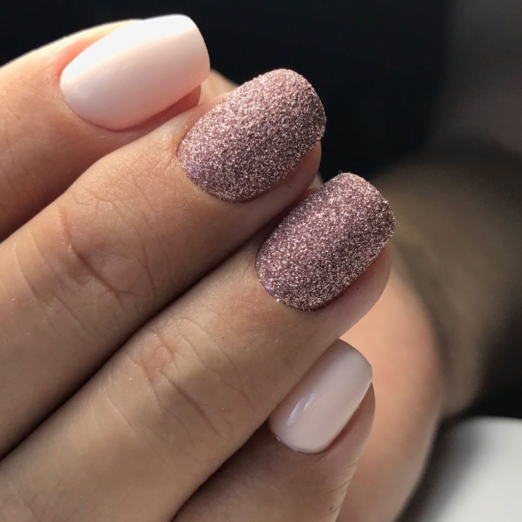 Совет: для стильного маникюра можно сделать яркий акцент. Например, оформить мизинец блестками или песком.