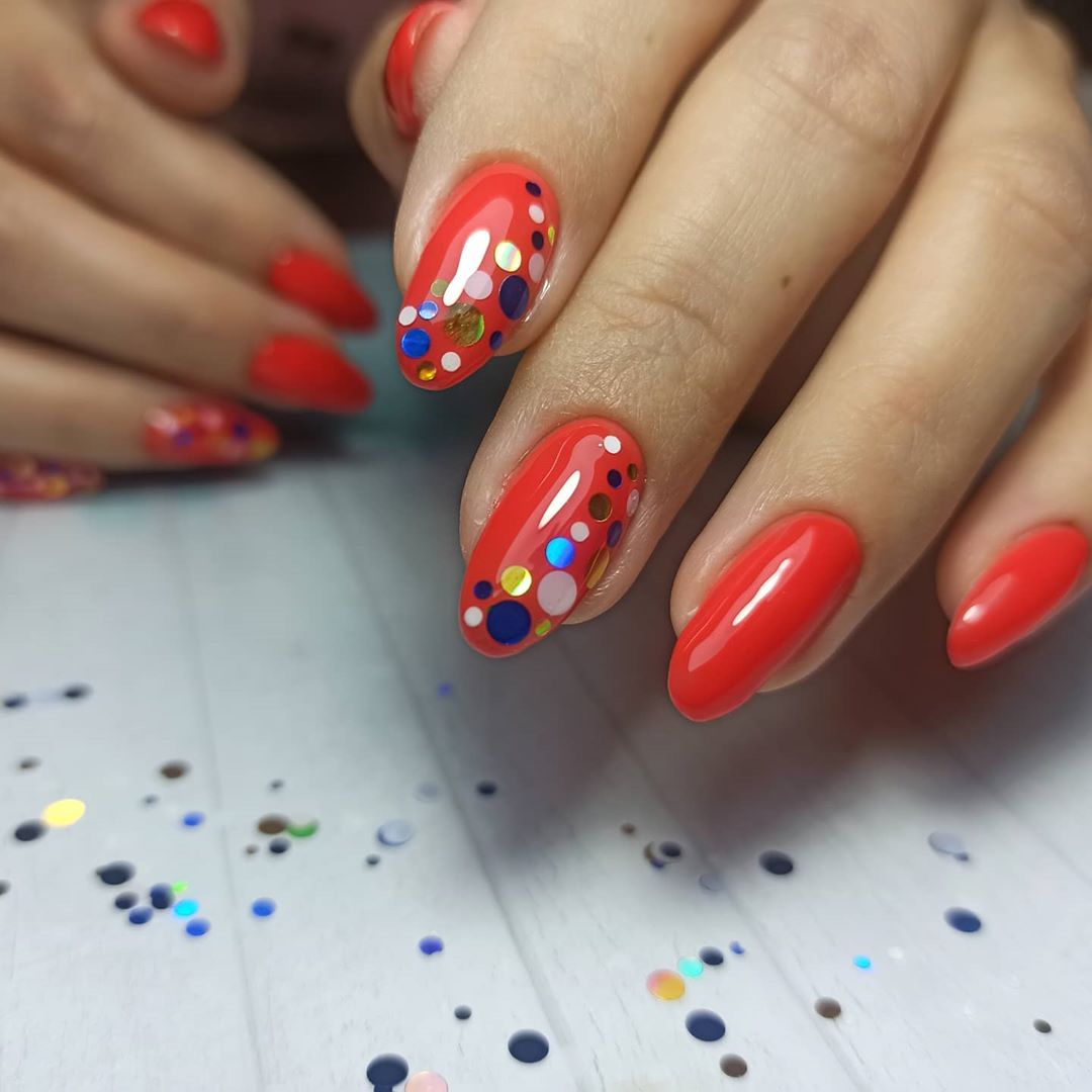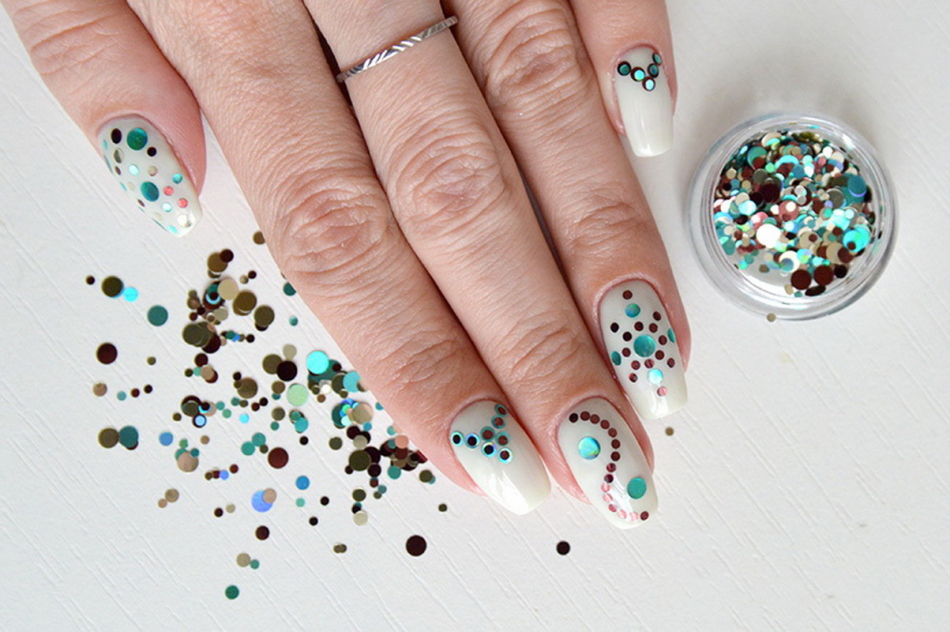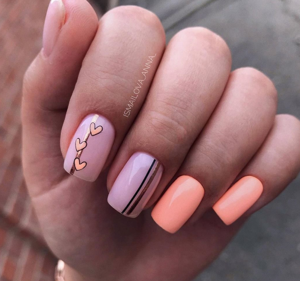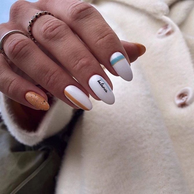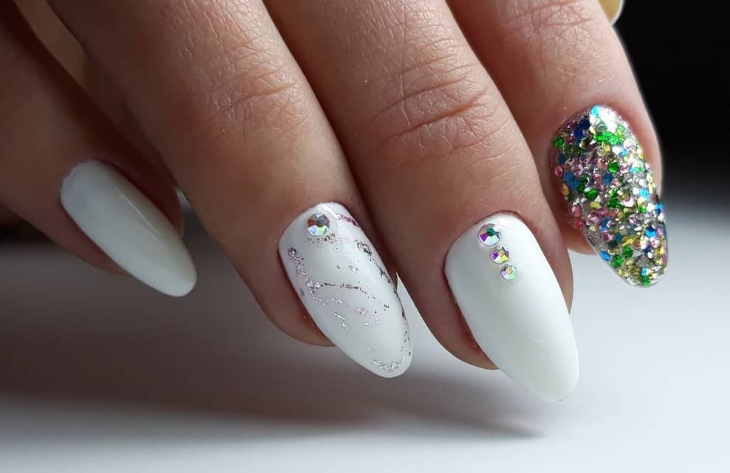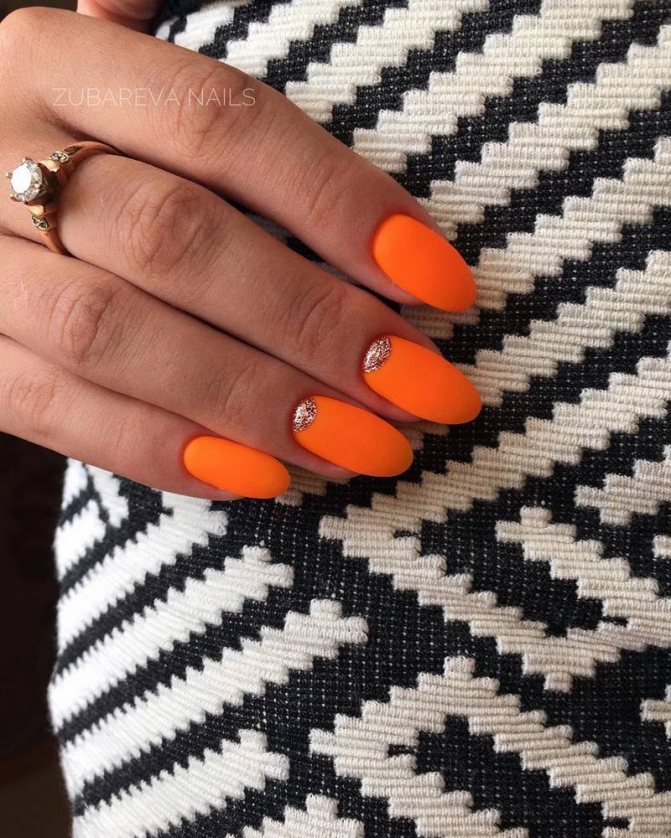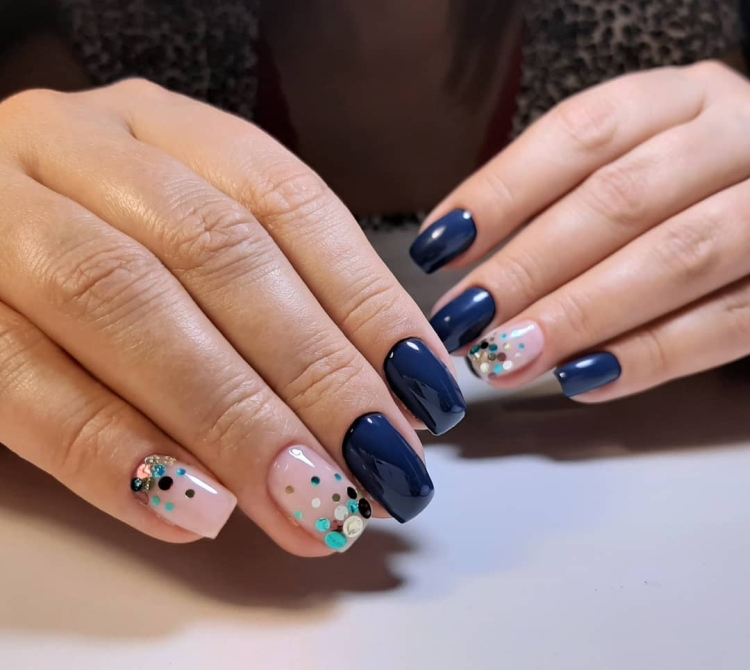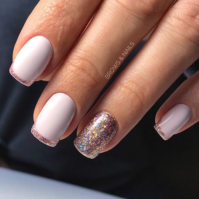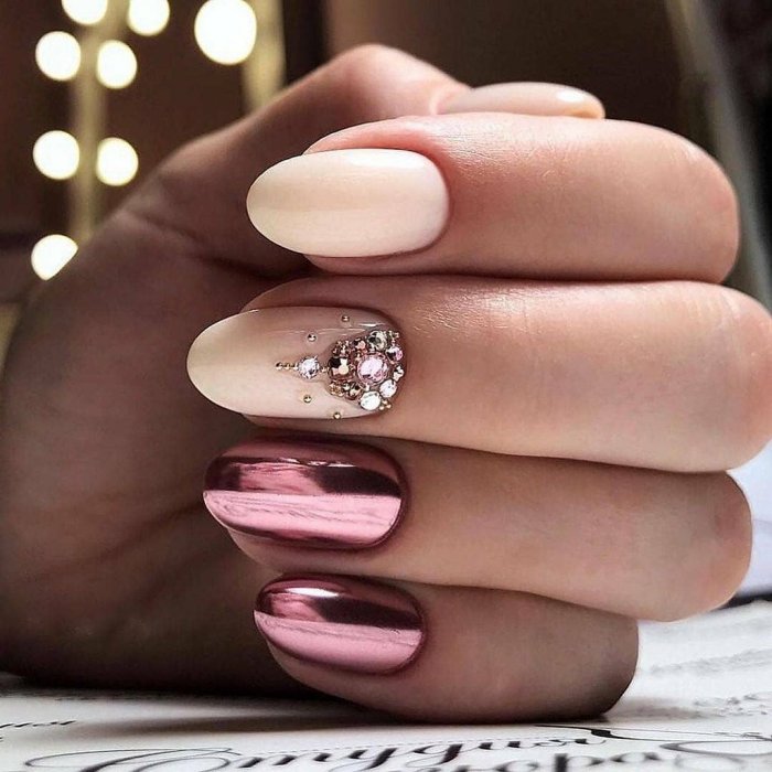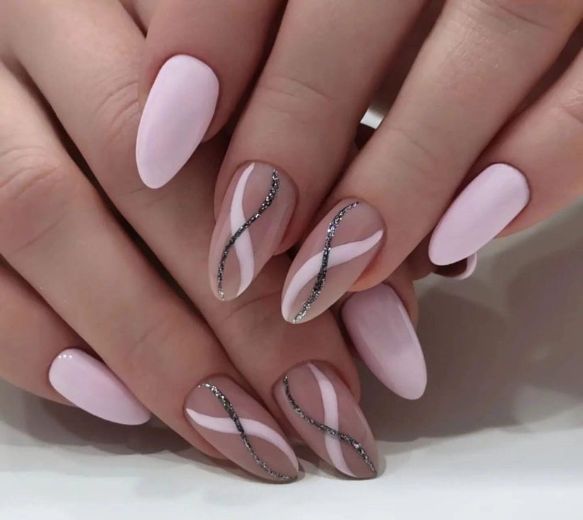 Совет: для стильного маникюра можно сделать яркий акцент. Например, оформить мизинец блестками или песком.