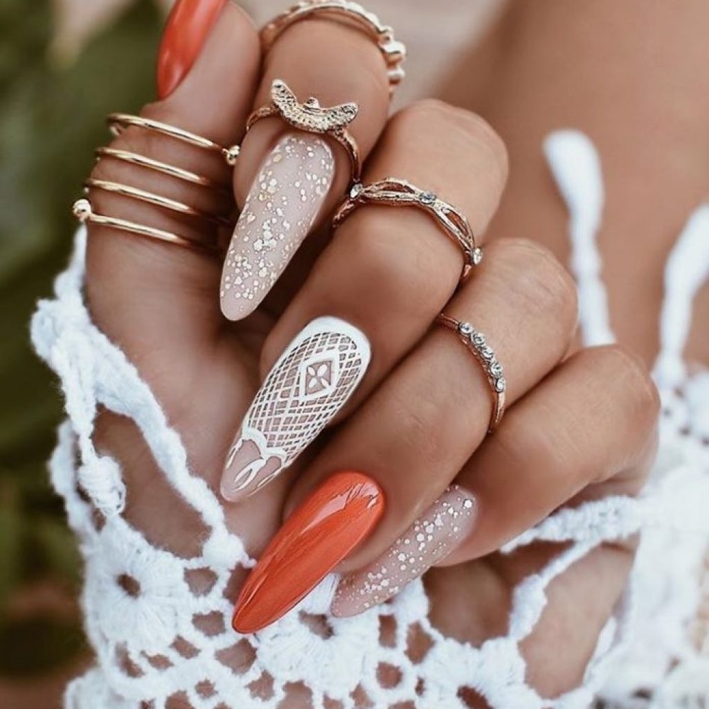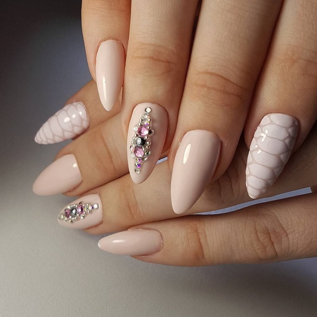 Длинные ногти — отличная база для стильного маникюра с любым видом дизайна. Это и стразы, блестки, рисунки, даже лепка, которую многие считают верхом нелепости и пошлости. Да, конечно, такой дизайн часто может выглядеть чрезмерно далеким от стильности. Но при соблюдении правил умеренности и правильно расставленных акцентах, дизайн поразит вас своей новизной и актуальностью. Если у вас длинные ногти, выбирайте абсолютно любой вариант декора.