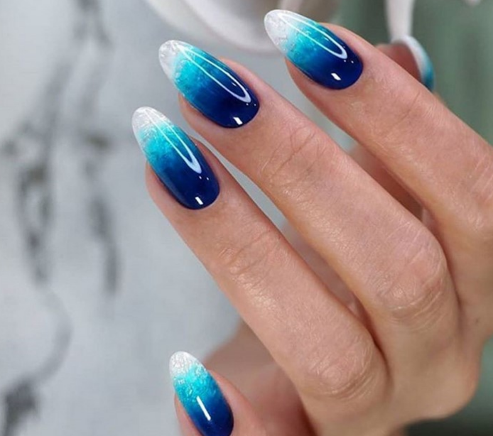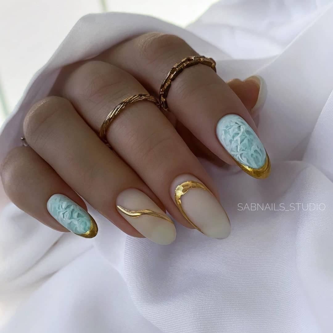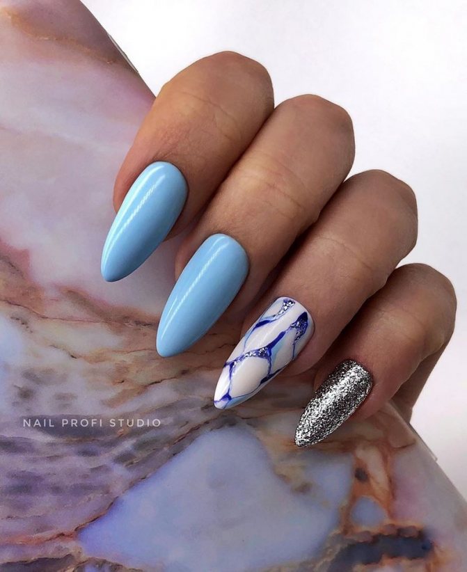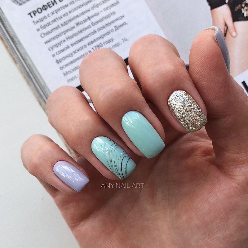 - голубой — это цвет ясного неба. Такой оттенок лака подходит для стильного маникюра в любой сезон. Обратите внимание на бирюзовые и мятные оттенки. Они также актуальны при создании модного дизайна;