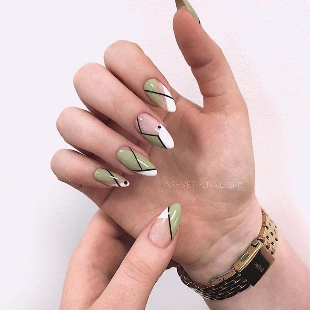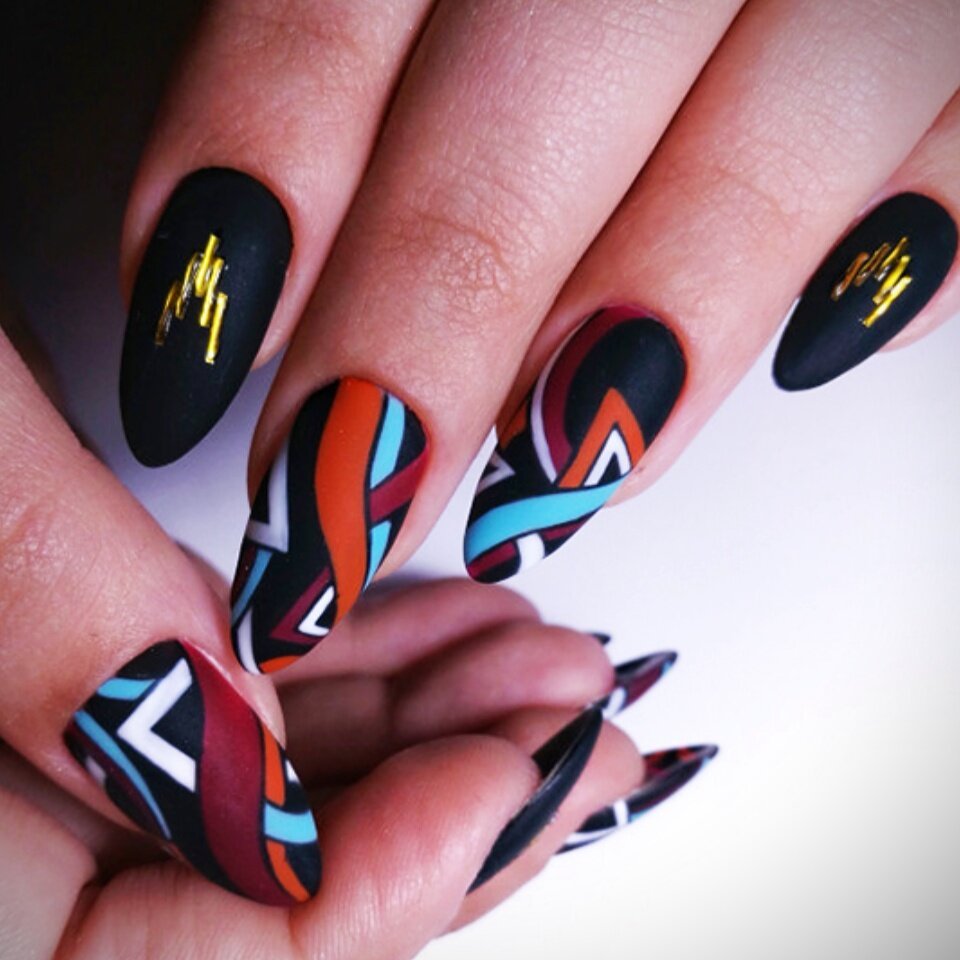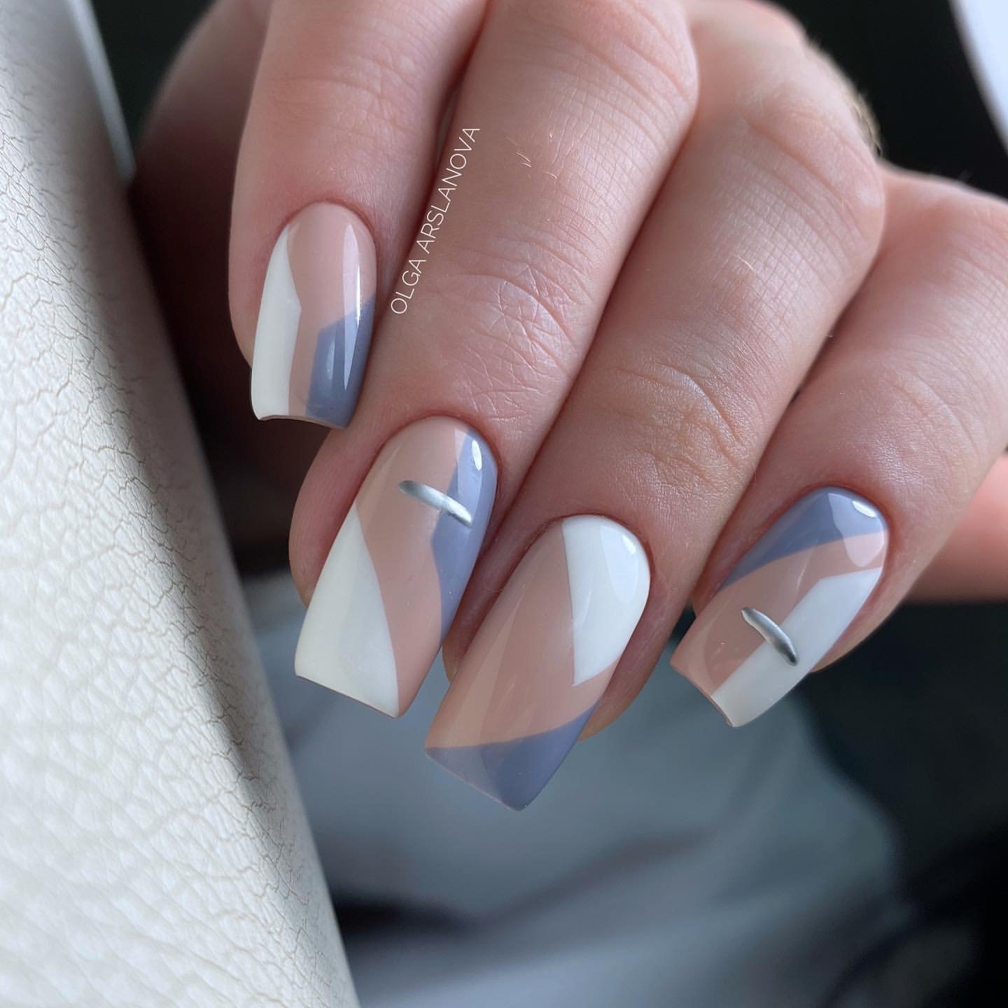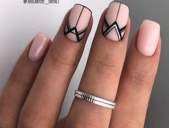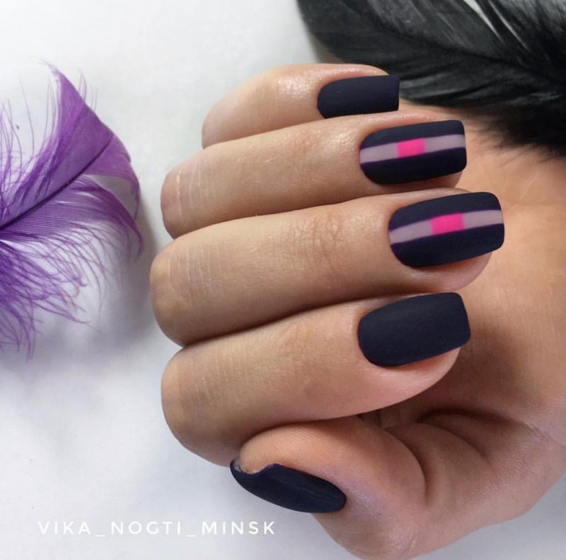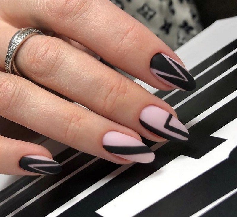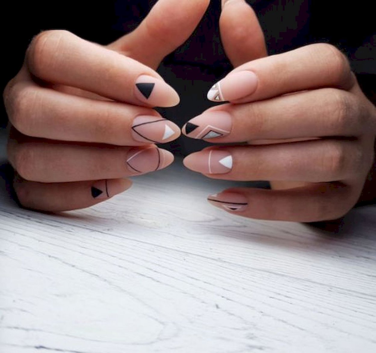 Геометрический рисунок подходит даже для офисного маникюра. Кто не хочет быть стильным в любой день недели? Но в этом сезоне геометрия должна сочетаться с минимализмом. Самый популярный вариант сезона — геометрия в стиле «color block» в сочетании с матовым топом. Эффектно смотрятся геометрические линии, повторяющие форму ноготка.