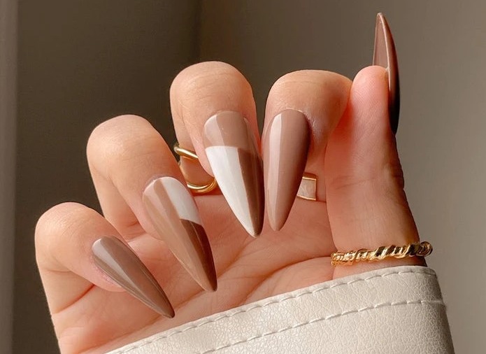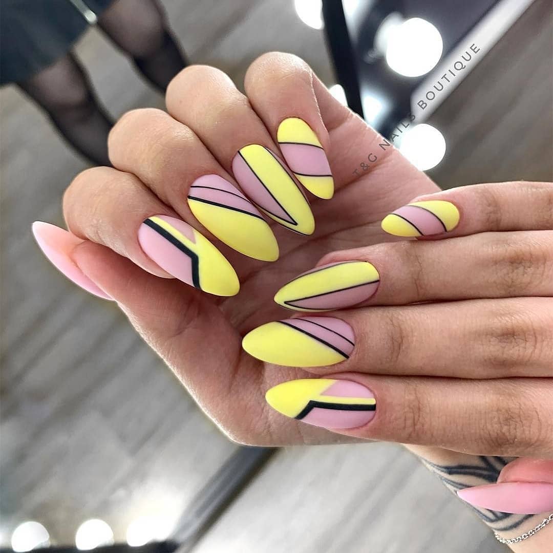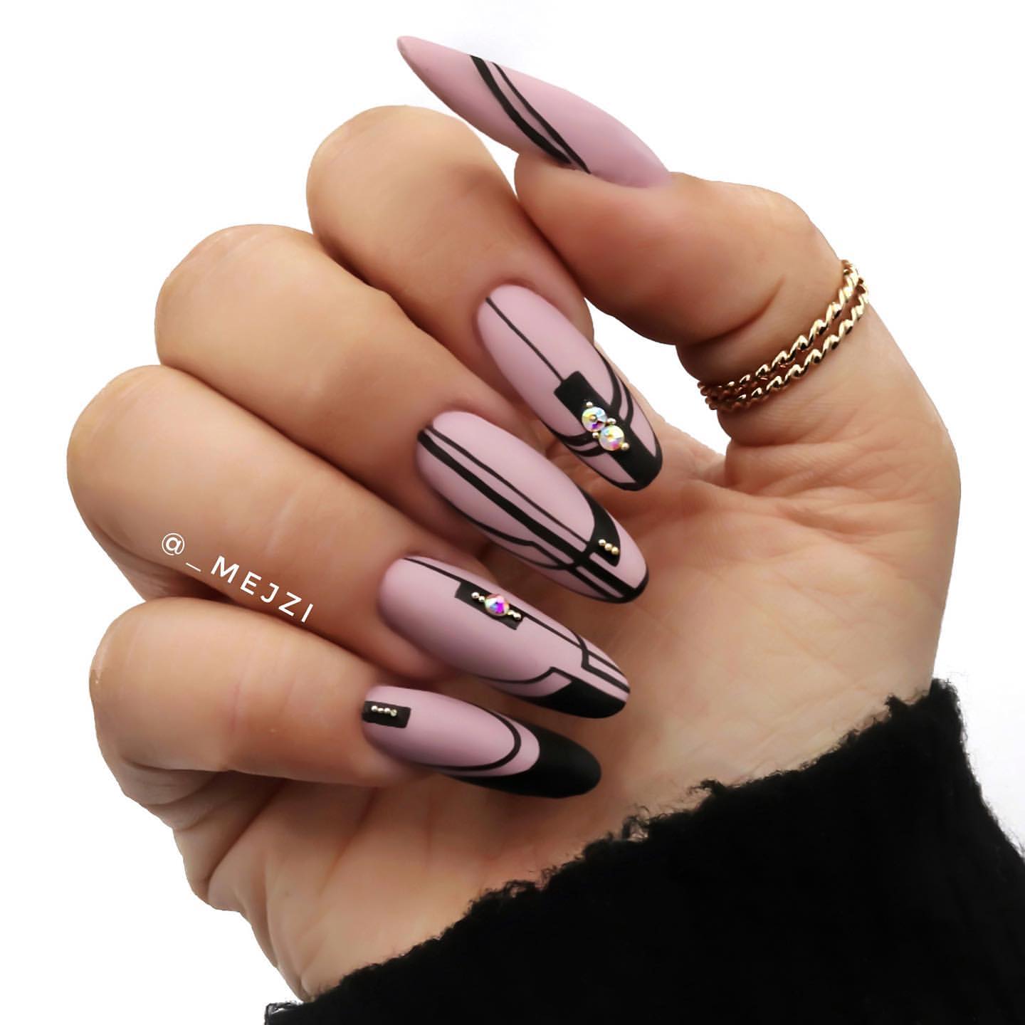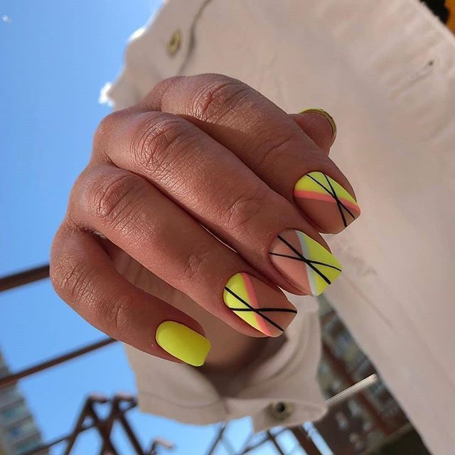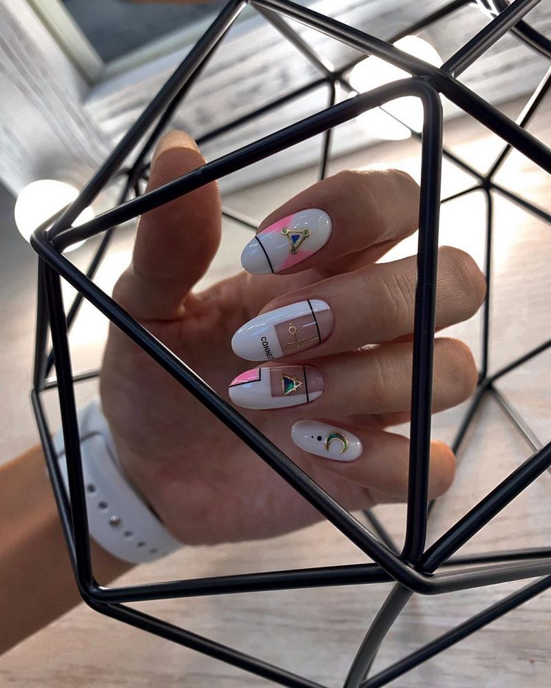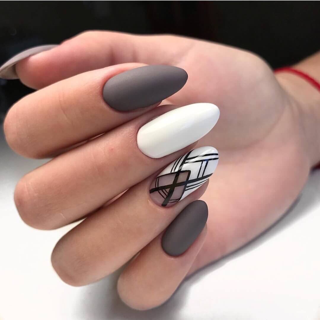 Геометрический рисунок подходит даже для офисного маникюра. Кто не хочет быть стильным в любой день недели? Но в этом сезоне геометрия должна сочетаться с минимализмом. Самый популярный вариант сезона — геометрия в стиле «color block» в сочетании с матовым топом. Эффектно смотрятся геометрические линии, повторяющие форму ноготка.