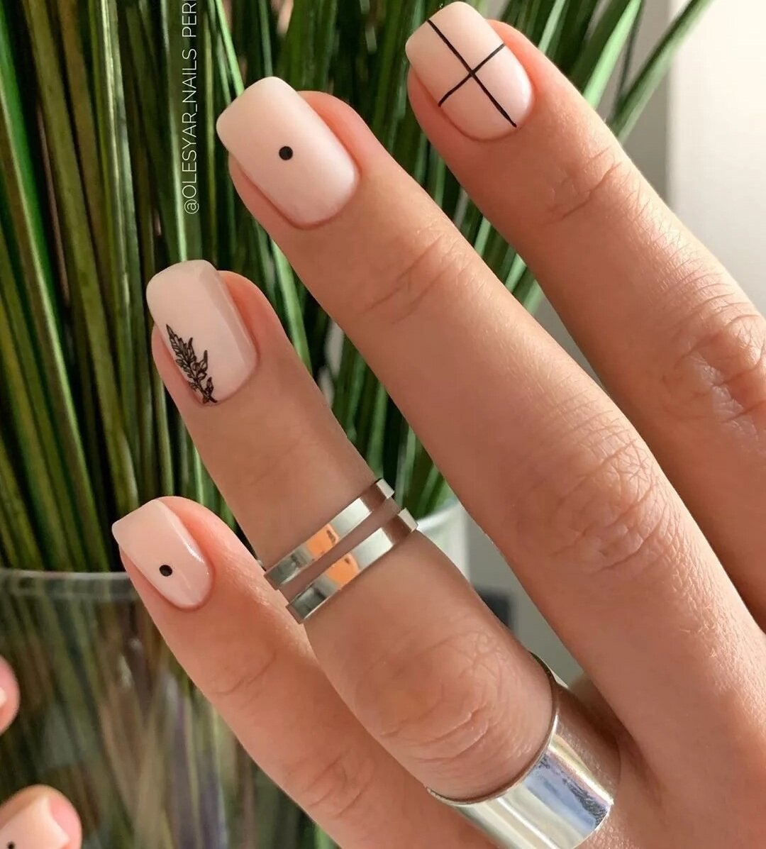 Да, это отдельный вид дизайна ногтей. И при кажущейся простоте, он очень сложный. Ведь правильно расставить акценты в стиле минимализм, сделав при этом стильный маникюр очень непросто. Каковы правила такого декора? Все просто — минимум цвета и минимум дизайна. Маленькие цветочки, веточки, сердечки, полосочки, точки — все это украсит нюдовые или черные, белые ноготки. Не стоит выбирать яркие цвета, хотя и они имеют место быть в этом стиле.