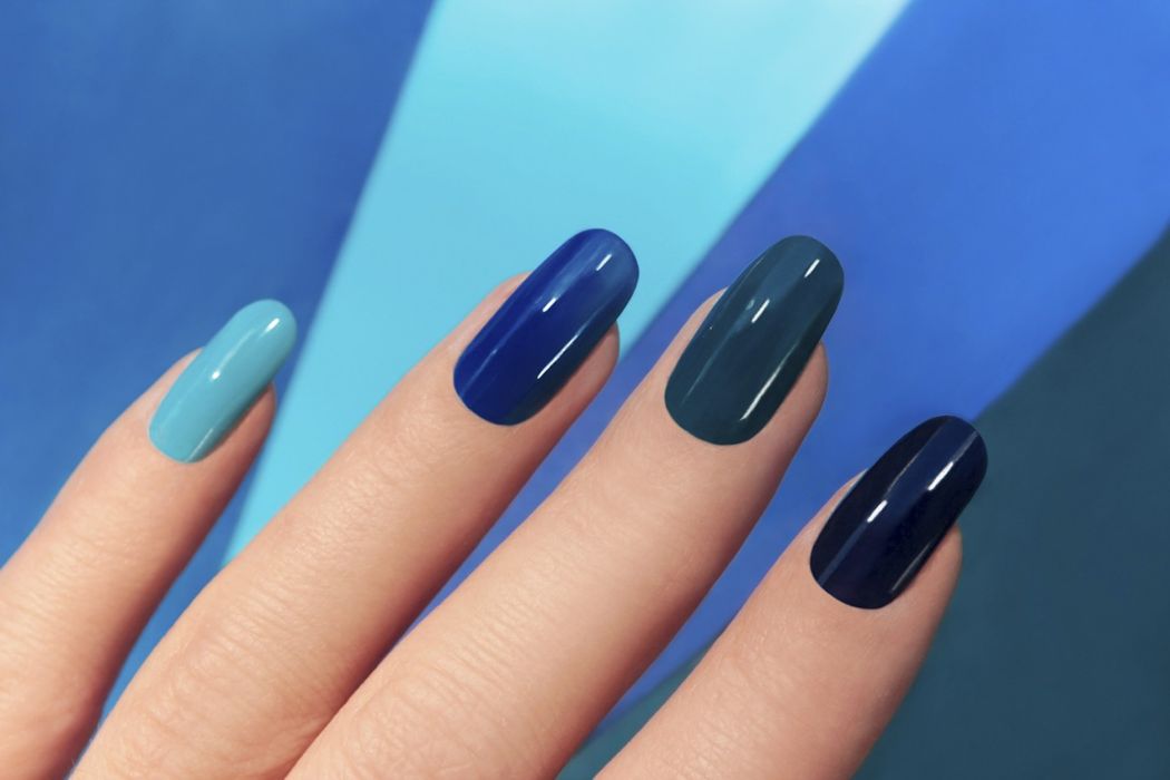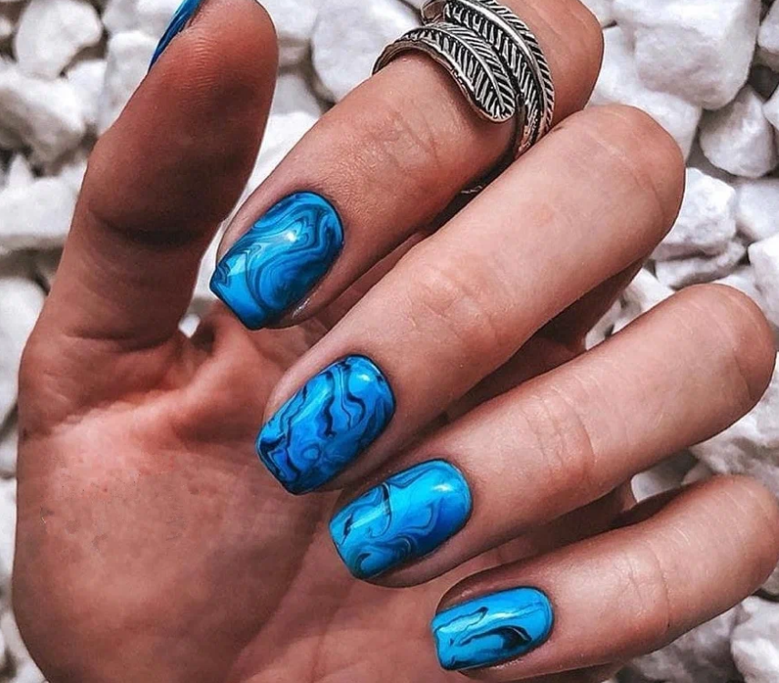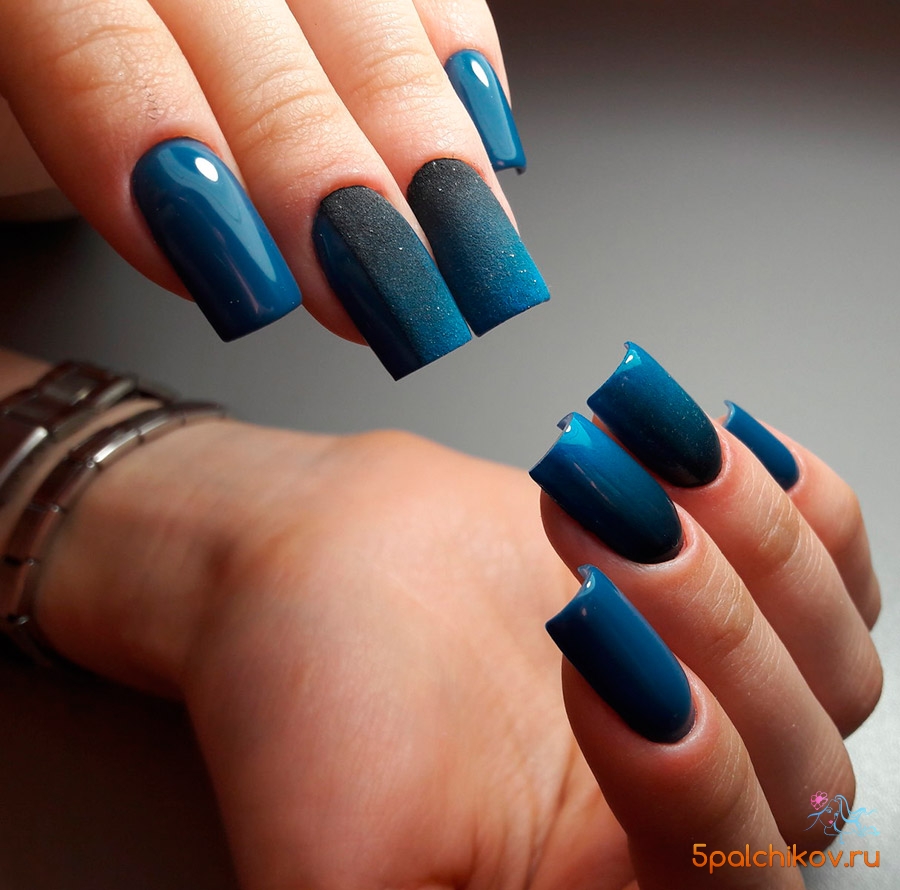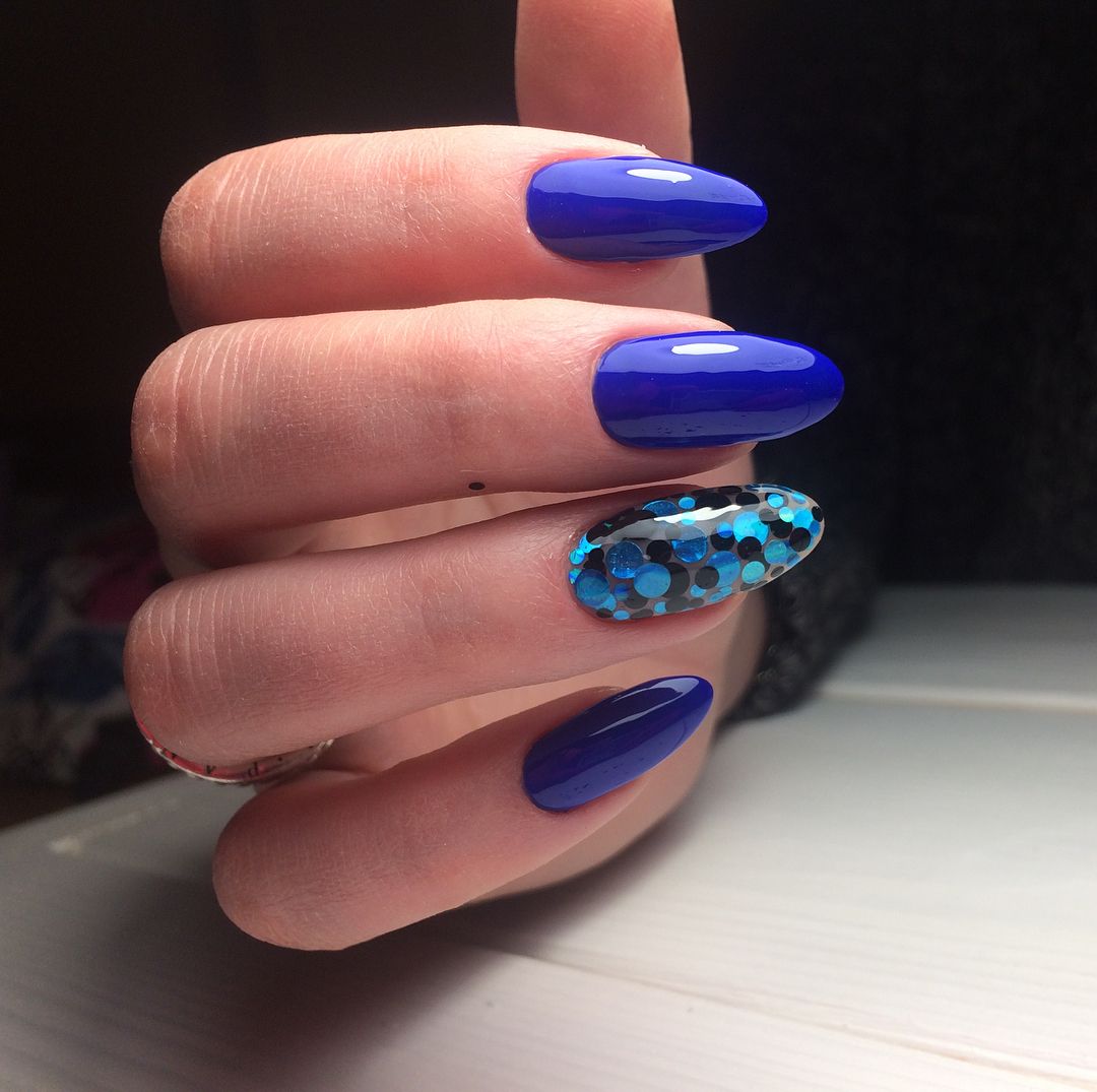 - яркий синий. Это цвет на все времена. С его помощью можно сдать акцент или украсить пальчики моно дизайном;