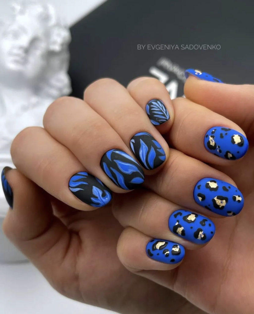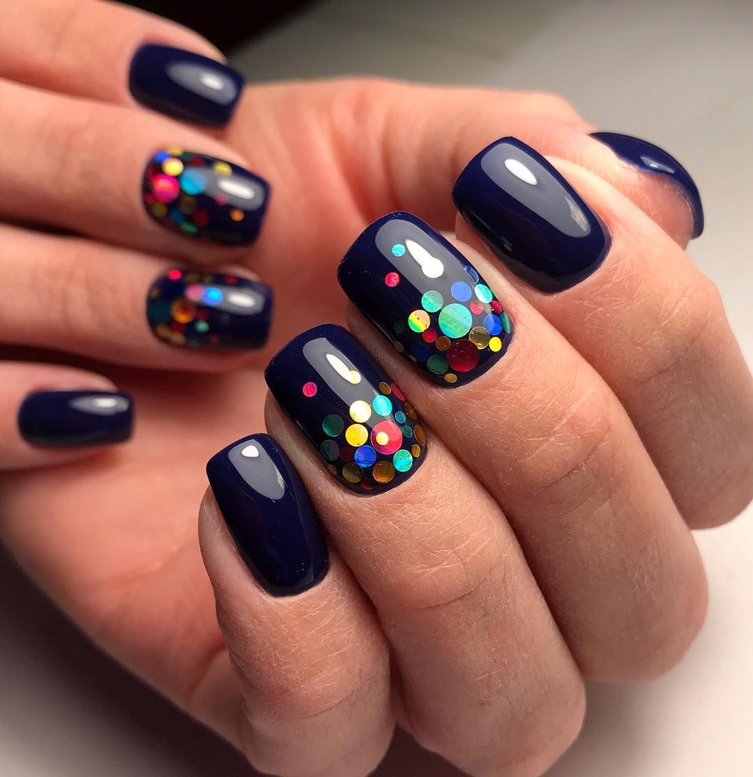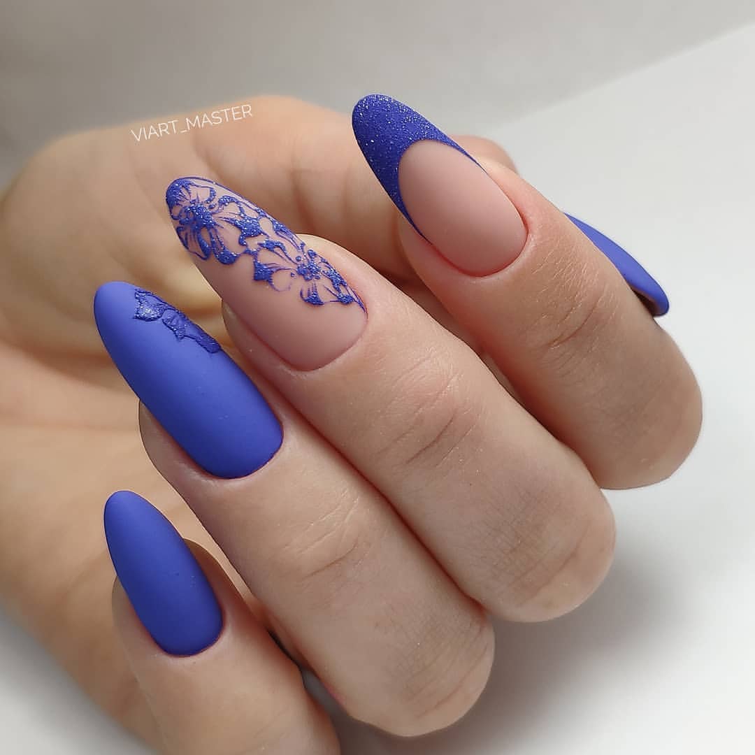 - яркий синий. Это цвет на все времена. С его помощью можно сдать акцент или украсить пальчики моно дизайном;