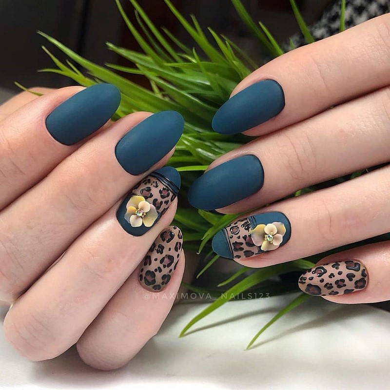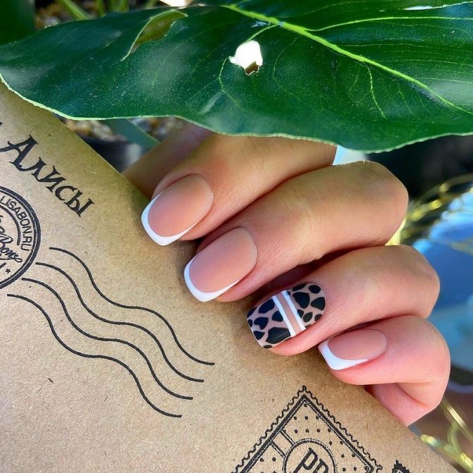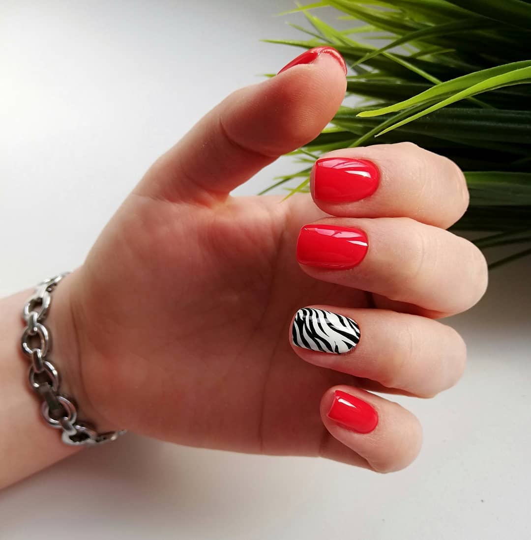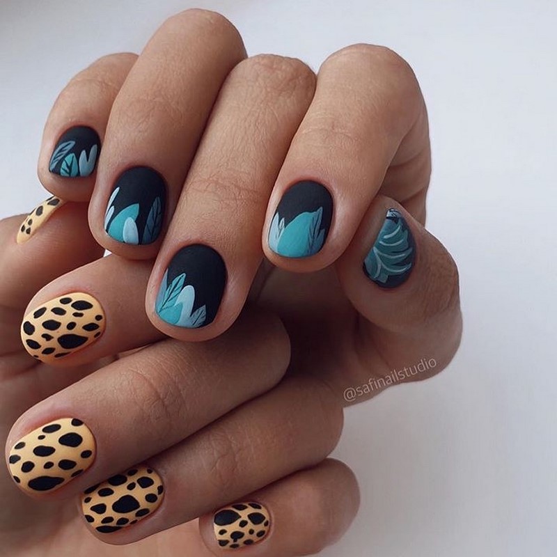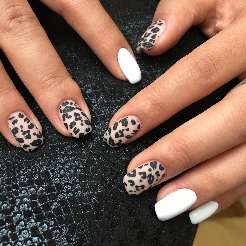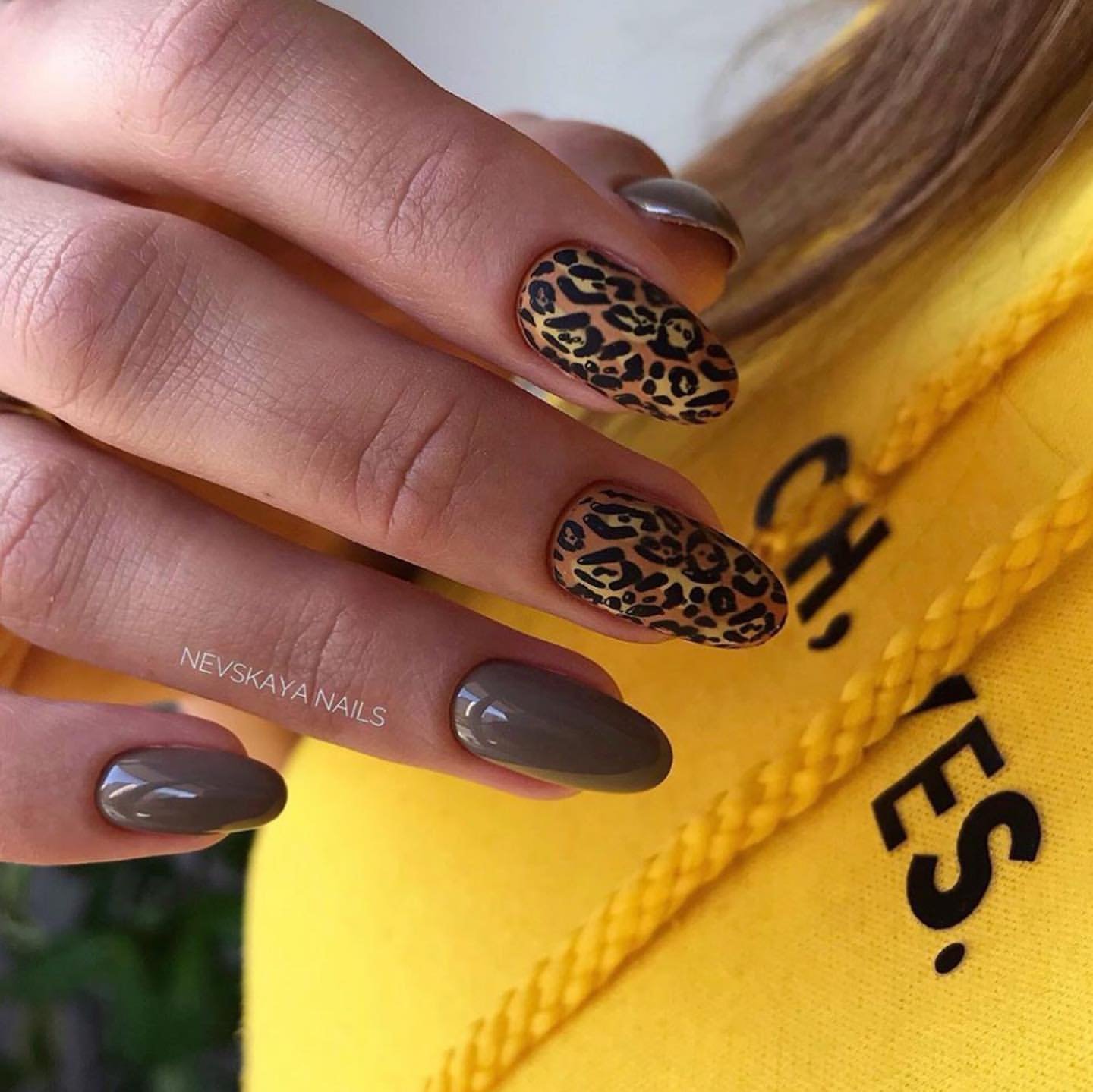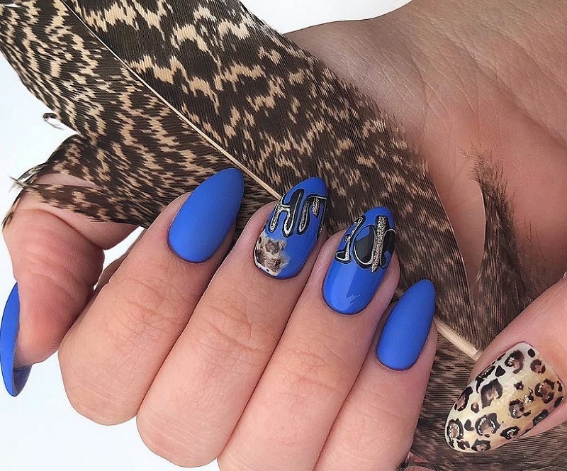 Животный принт обрел популярность с наступлением года тигра. Но в этом сезоне актуальны любые другие фактуры — змеиный, леопардовый, зебровый принт. Стильно и мило смотрятся ногти с фактурой жирафа, коровы, крокодила и любого другого животного. Сочетайте дизайн с матовым топом и маникюр будет модным и актуальным. Необязательно оформлять животным принтом все ноготки, достаточно сделать такой активный акцент всего на одном пальчике.