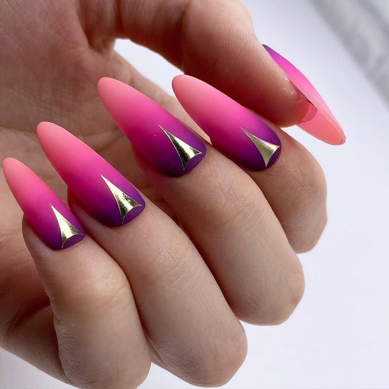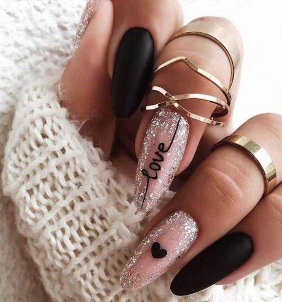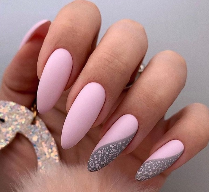Интересная форма ногтей отлично подойдет для создания стильного маникюра. Балерина в матовом исполнении с ярким блестящим акцентом, рисунки или конфетти, фольга или втирка — все будет смотреться актуально.
