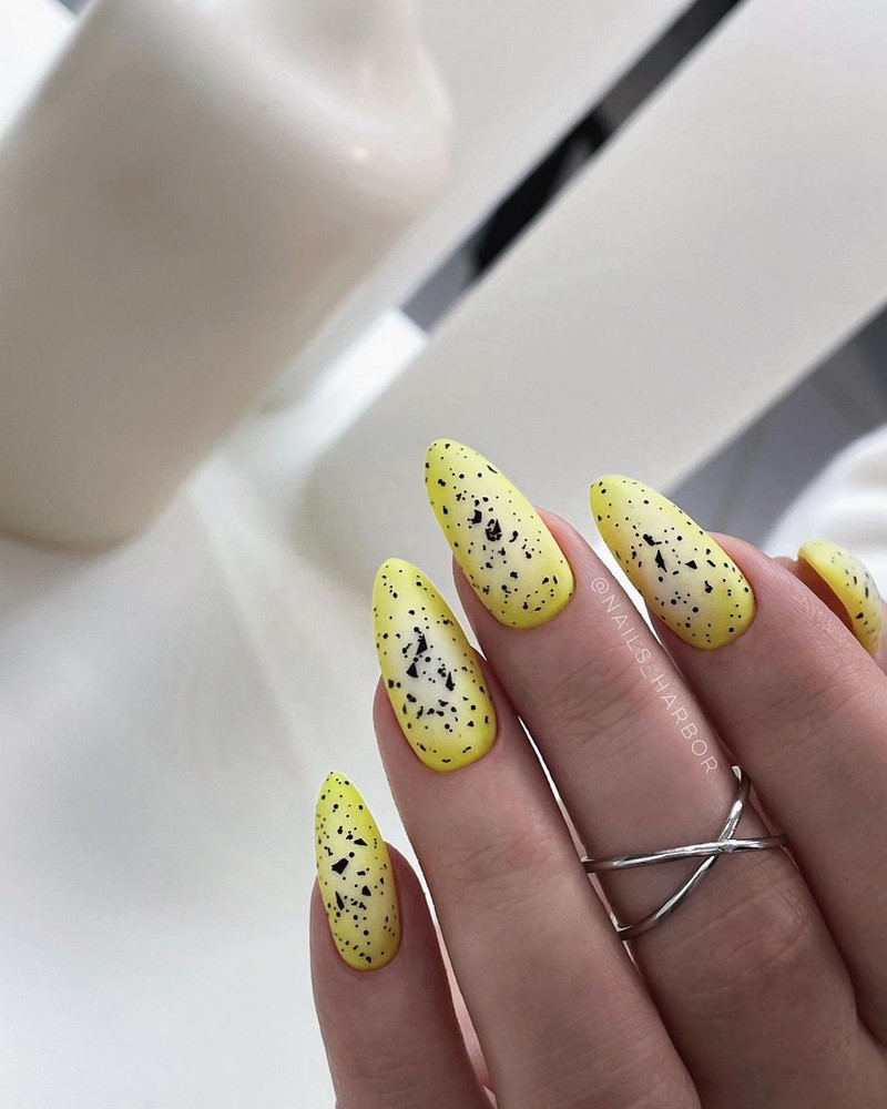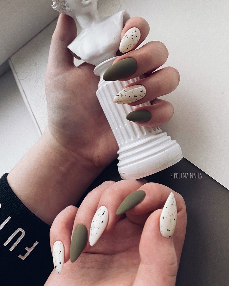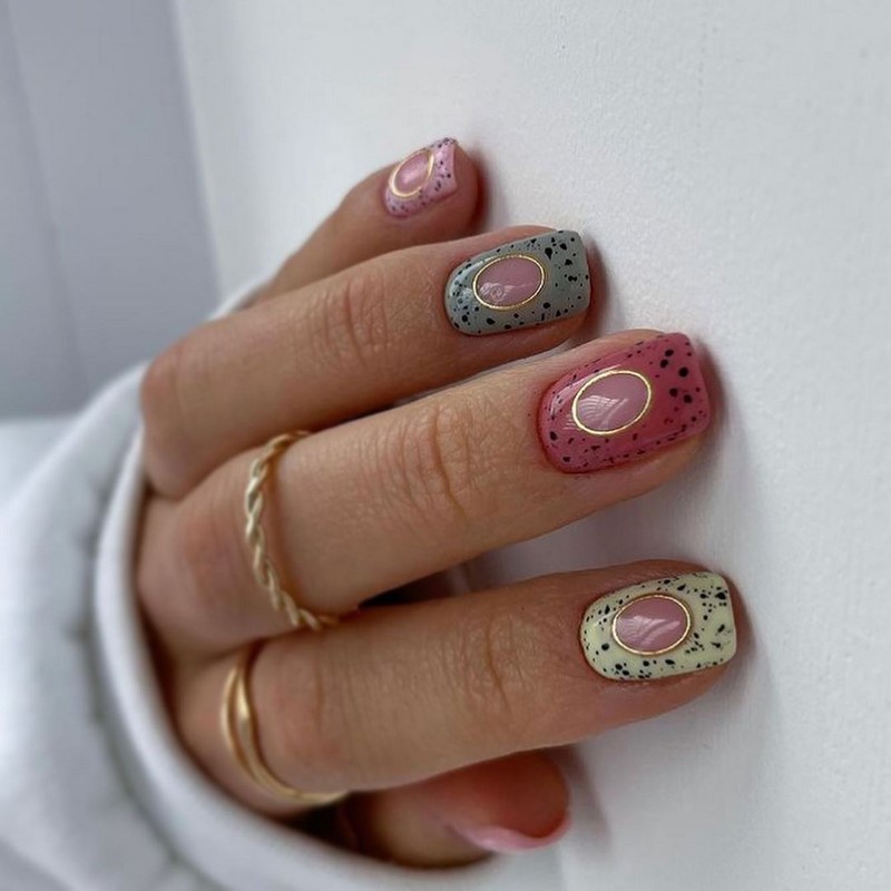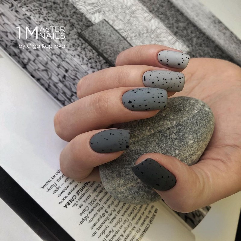Совет: при желании вы можете сочетать дизайн перепелиное яйцо с эффектом разные руки. Просто оформите одну в стиле моно, а другую с эффектом перепелиного яйца.