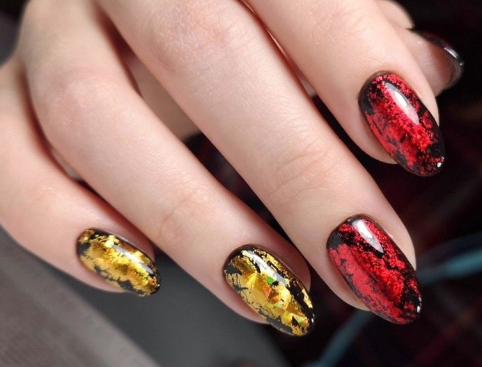 Фольга — один из любимых домашних декоров наших модниц. Работать с ней легко. Это непритязательный материал, который не требует точного размещения. Чем сложнее и необычнее будет рисунок, тем более стильным получится маникюр. Но мы рекомендует обратиться к мастерам нейл-арта. В этом сезоне они создают действительно уникальные варианты оформления ногтей.