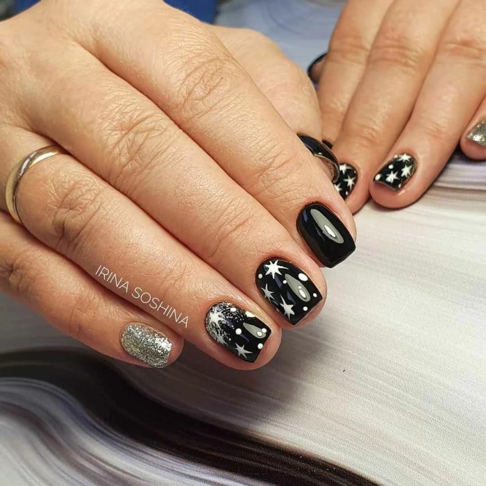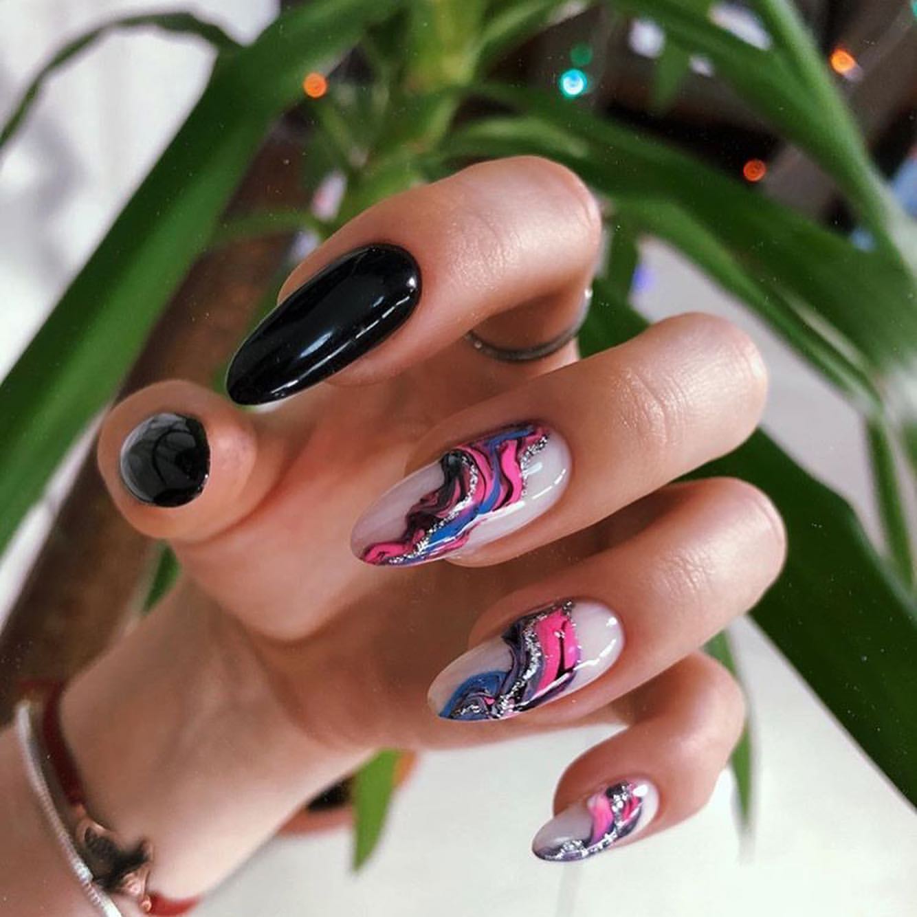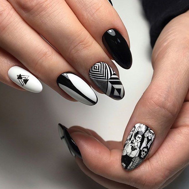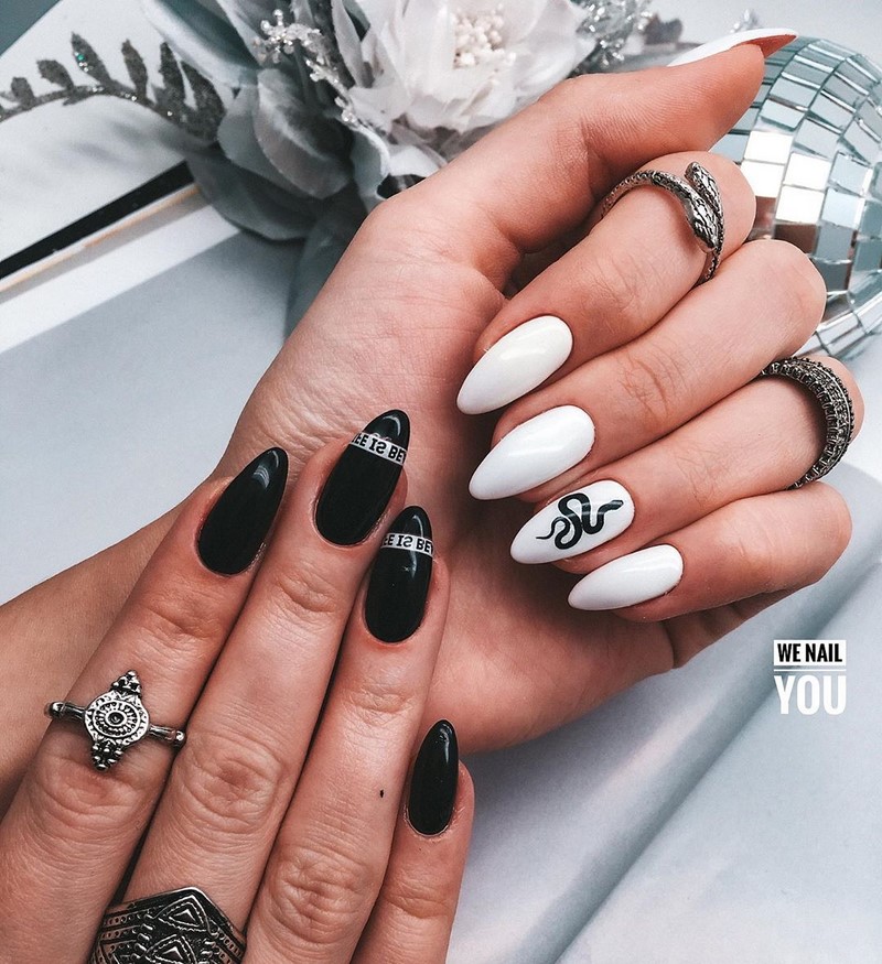 - черный и белый. Мы объединили эти цвета по простой причине — это классика. Они не теряют актуальности в любом сезоне. И только с их помощью можно создать стильный монохромный маникюр. А если добавить цветовой акцент, вы обязательно будете в центре внимания;