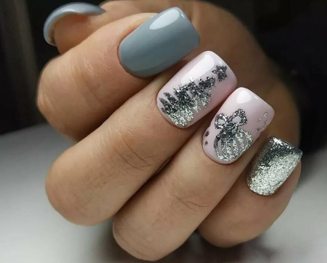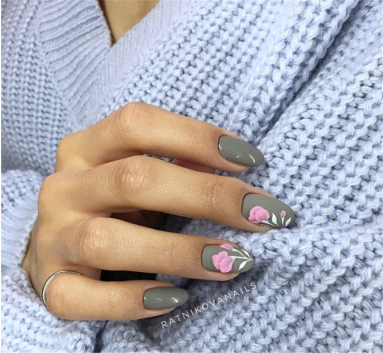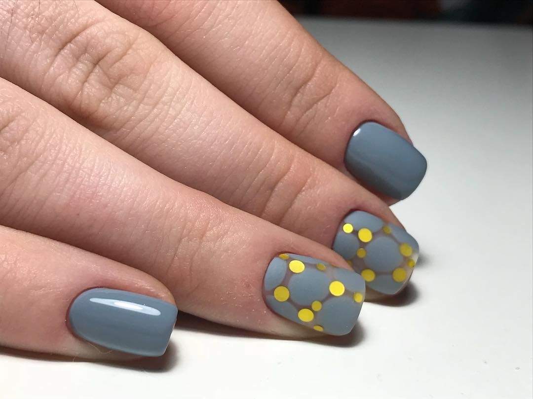 - серый. Если хотите стильный маникюр обязательно обратите внимание на серый с розовым или синим подтоном. Это универсальный цвет, с помощью которого можно создать массу интересных дизайнов.