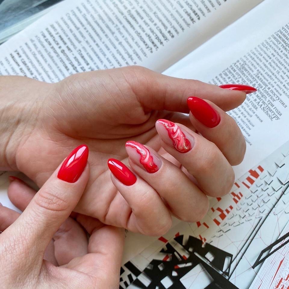 - красный. Этот цвет всегда в моде. Речь идет лишь об отдельных оттенках. В этом сезоне создать стильный маникюр не получится без винного, бордо и марсала;