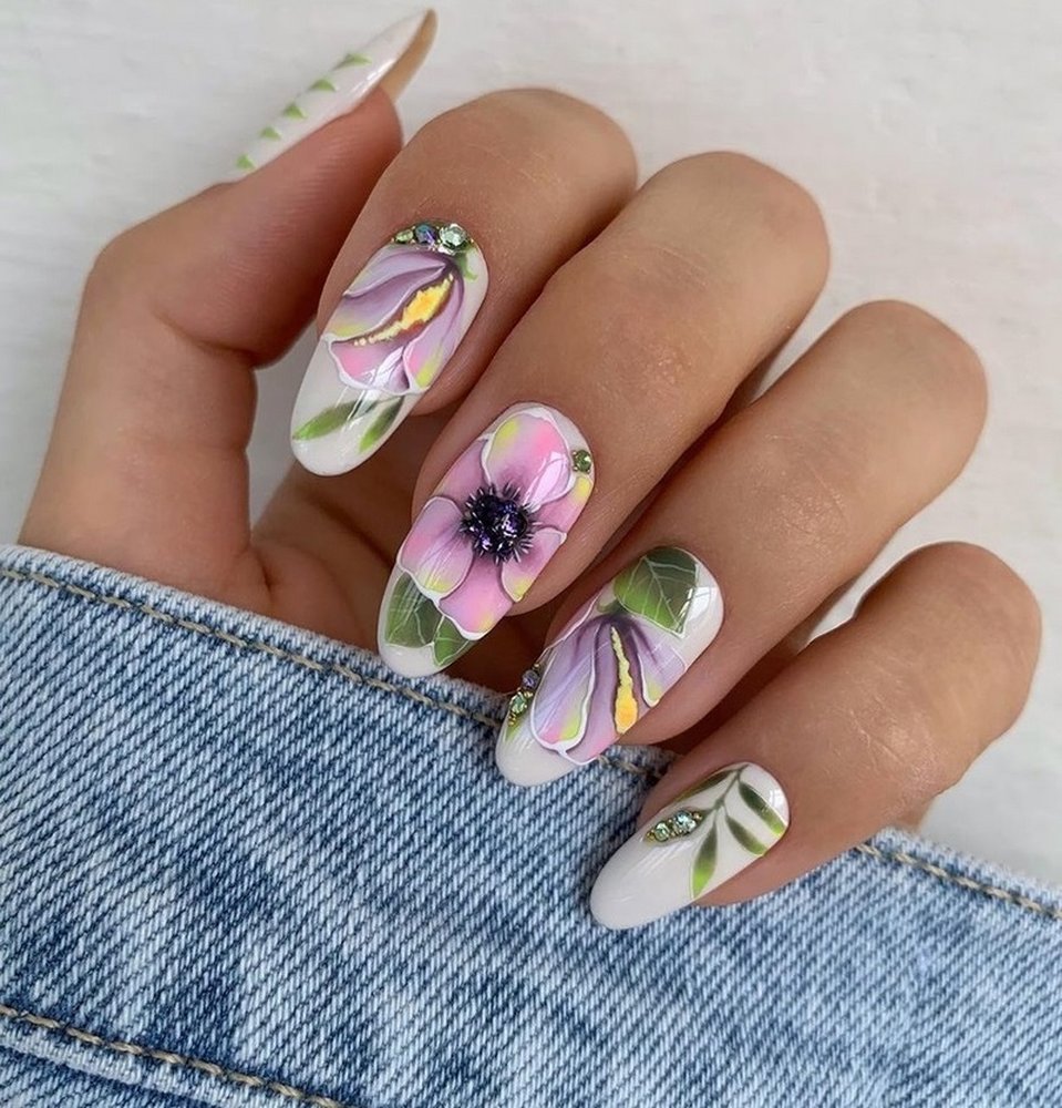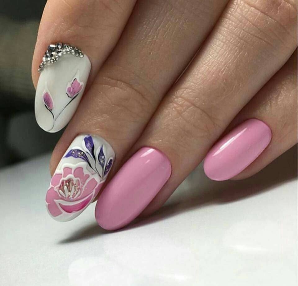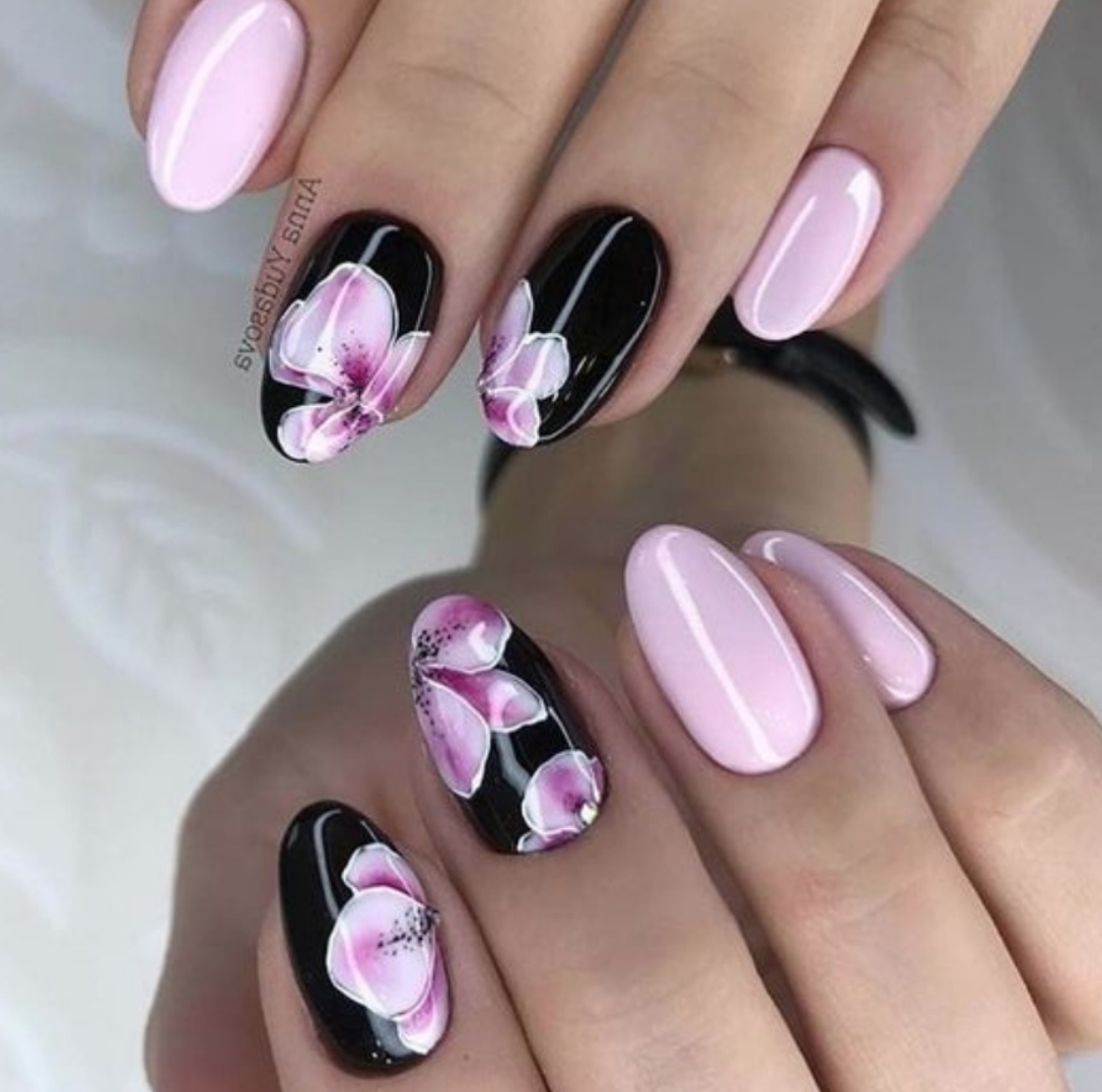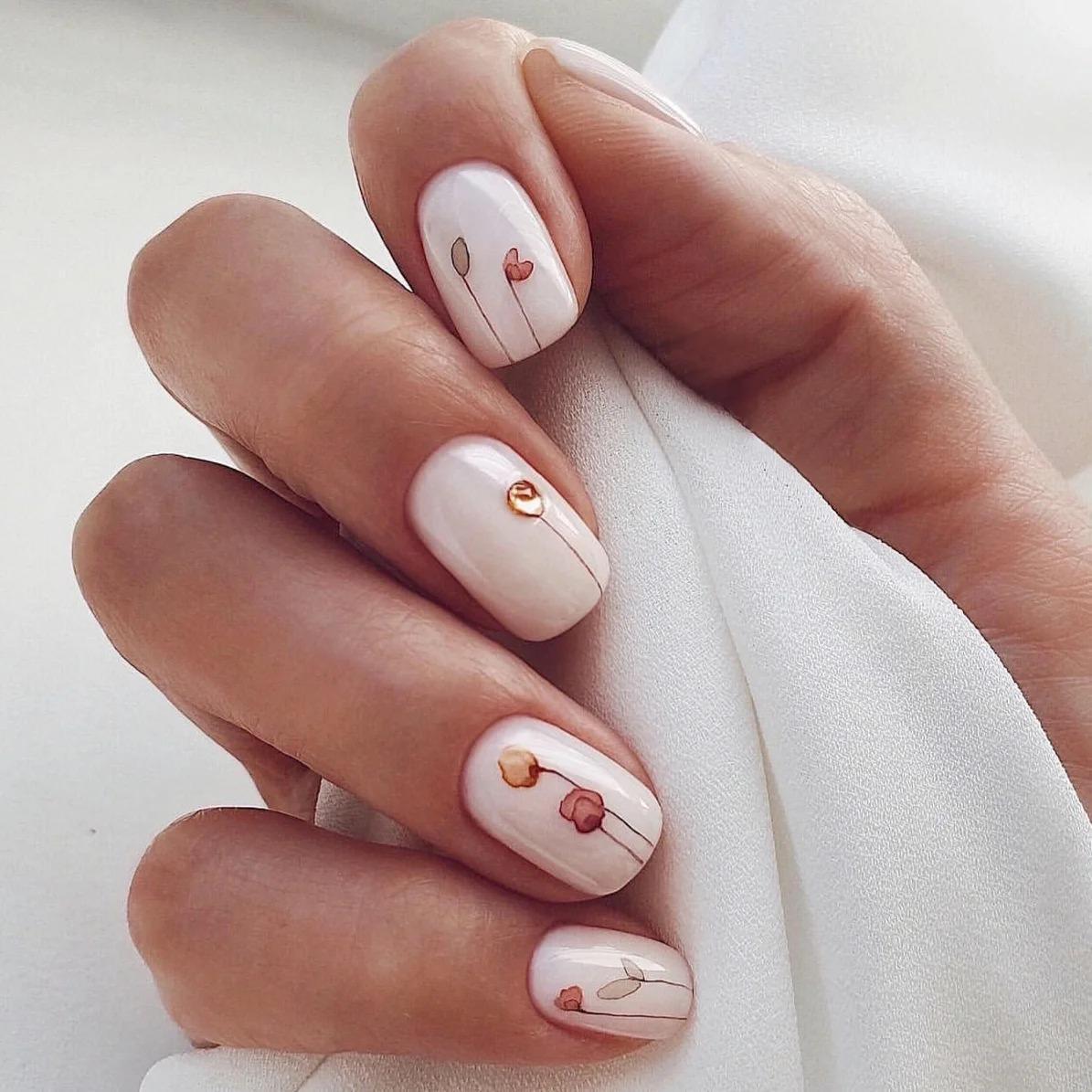 Рисунки в маникюре — любовь девушек по всему миру. Их можно нарисовать кистью, нанести с помощью техники стемпинга или наклеек, трафаретов. В этом сезоне особенно модными считаются акварельные рисунки, мазки краски, чернильные разводы. В каждом сезоне актуальны свои варианты рисунков. Но чаще всего модницы выбирают флористические мотивы — веточки, цветы, листья и др.
