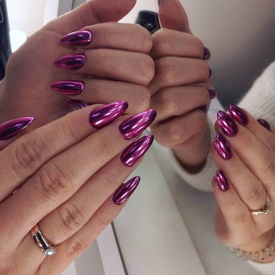 Миндалевидная форма — стильно и очень актуально. Кончик ногтя немного заострен, что соответствует одному из модных трендов этого сезона. Для миндалевидной формы необходимы средняя или большая длина пластины, поэтому таким ногтям подойдут любые техники и дизайны.