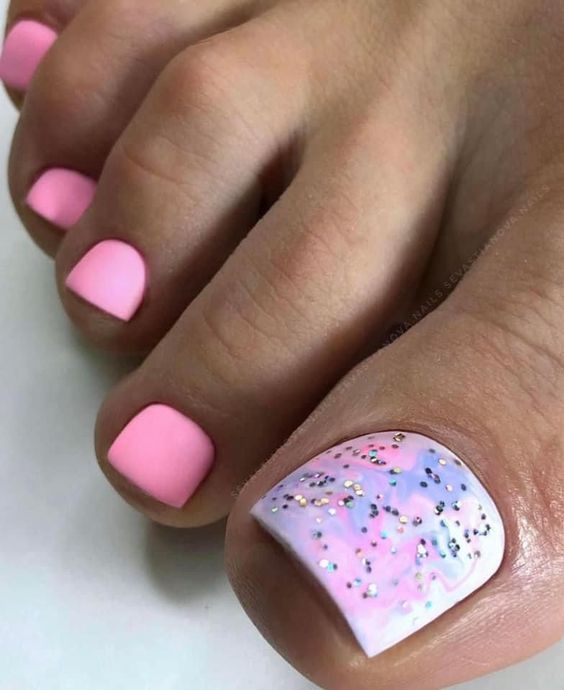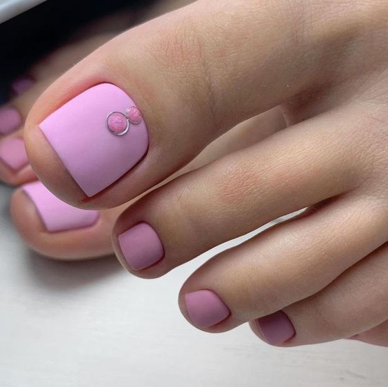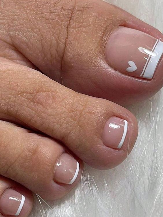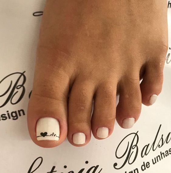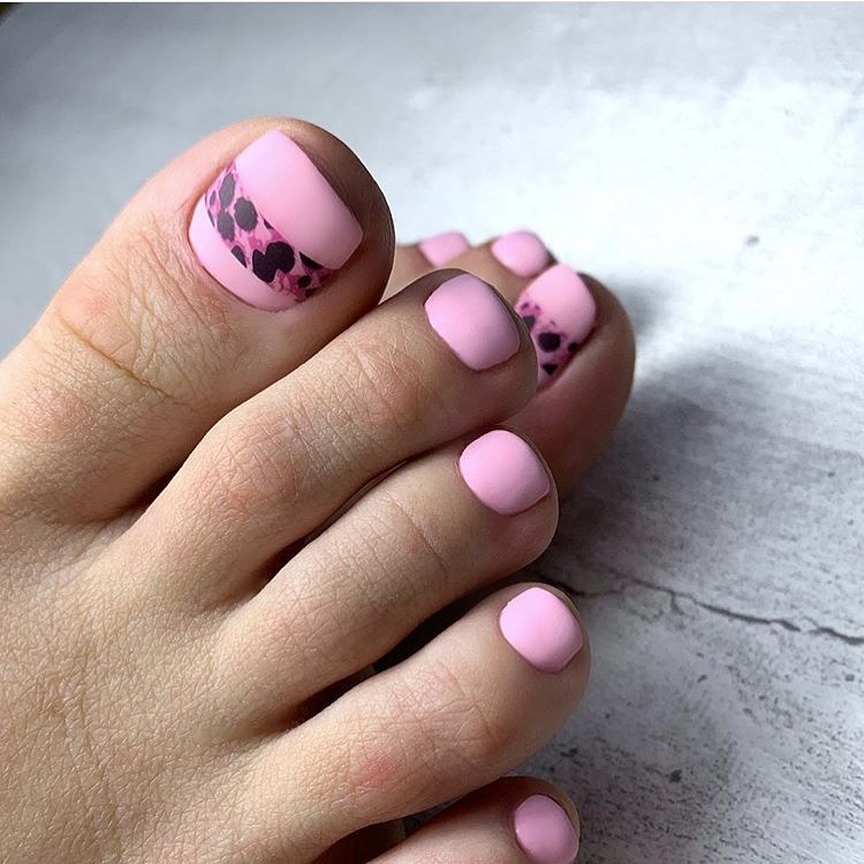 Если вам не хочется создавать простой однотонный педикюр, но и перегружать его рисунками или фольгой тоже не хочется, обратите внимание на тенденцию последних лет — минимализм. Вариантов оформления ногтей в таком стиле очень много. Например, нейтральная база с матовым топом и минималистичные рисунке на каждом ноготке или только на большом. Это могут быть точки, полоски или маленькие сердечки. То есть небольшие намеки на дизайн. Поверьте, такой педикюр с небольшим акцентом выглядит гораздо более стильным, чем ногти, богато украшенные другими вариантами декора.